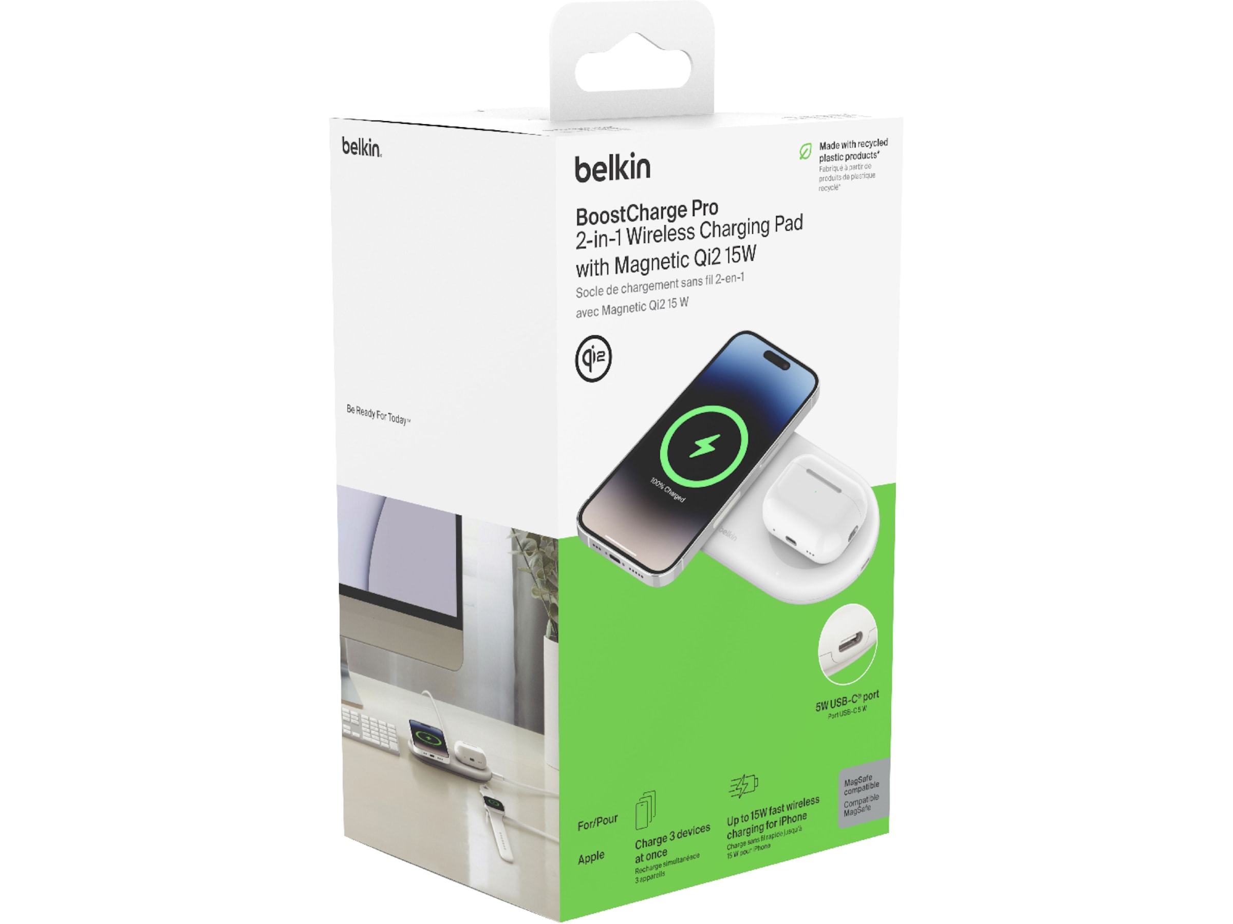 Belkin BoostCharge Pro 2-i-1 trådløs opladerplade med magnetisk Qi2 15 W