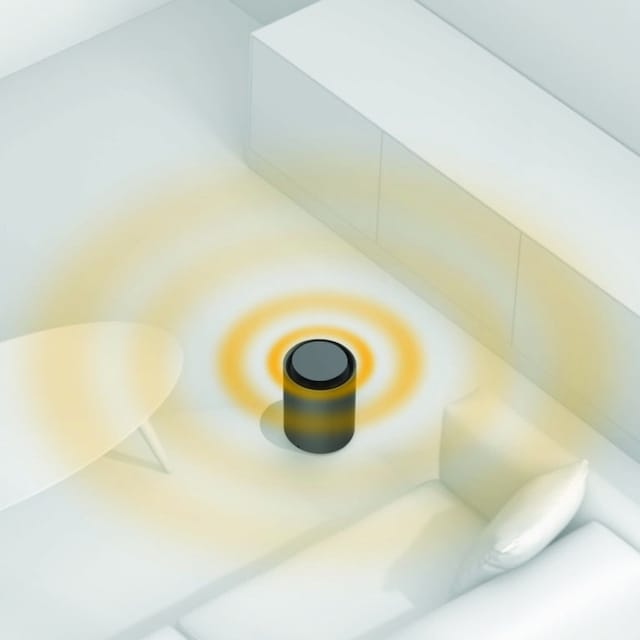 Threesixty 2 har en unik organisk form, hvilket betyder, at den falmer ind i enhver indretning og ikke tiltrækker opmærksomhed. Den har en mat finish og er udstyret med minimalistisk to-knaps betjening på fronten.