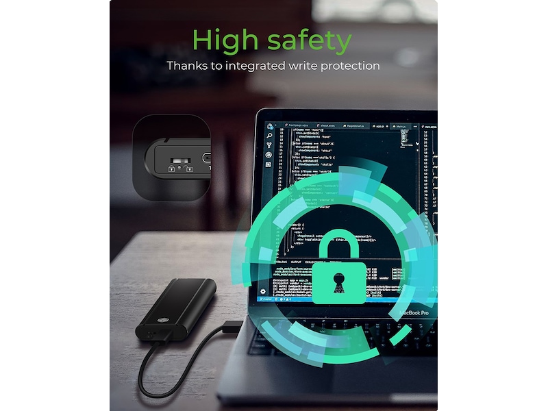 Med USB 3.2 Gen 2 Type-C®-interface og skrivebeskyttelse