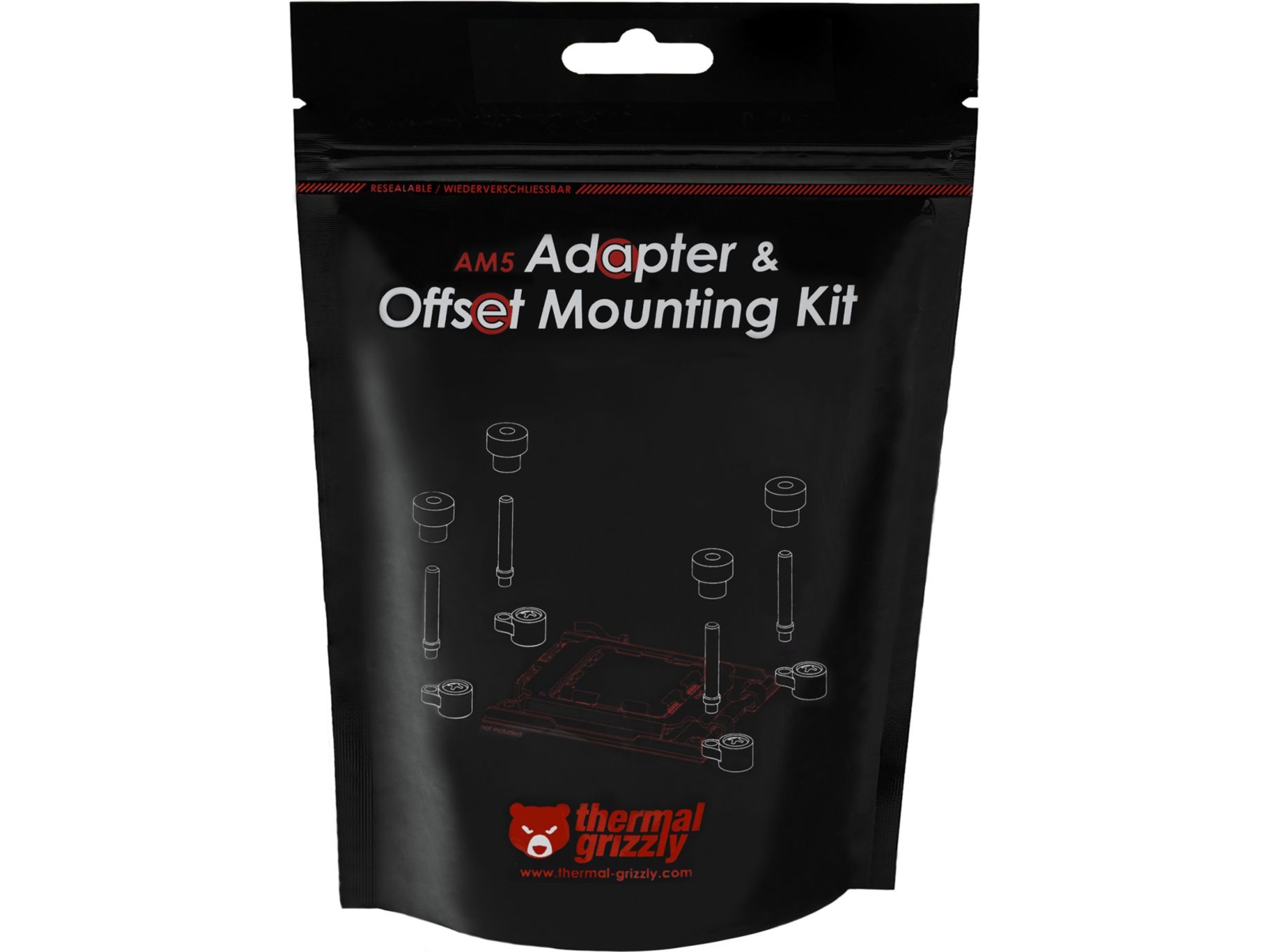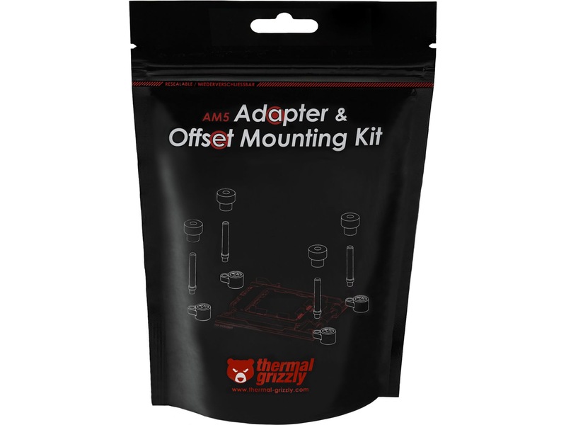 De forskudte beslag har UNC 6-32 gevind og kan bruges med adapterskruerne på M3/M4 gevind. AM5 Adapter & Offset Mounting Kit øger også CPU-kølers monteringskompatibilitet, når du bruger Thermal Grizzly Ryzen 7000 Direct Die Frame. På grund af ændringen i monteringshøjde med Direct Die køling skal køleren monteres lavere, hvilket er muliggjort af M3 og M4 adapterskruerne.