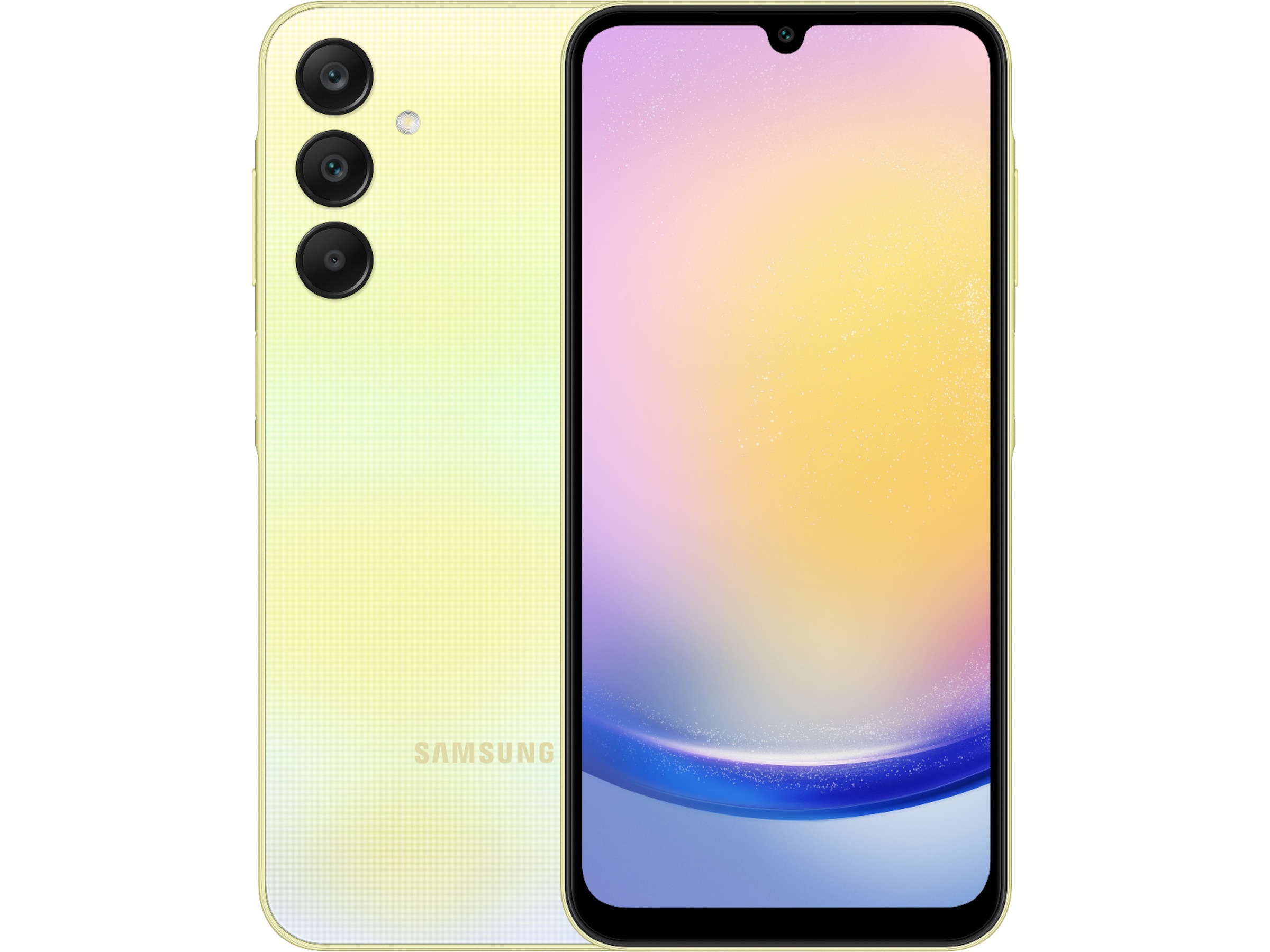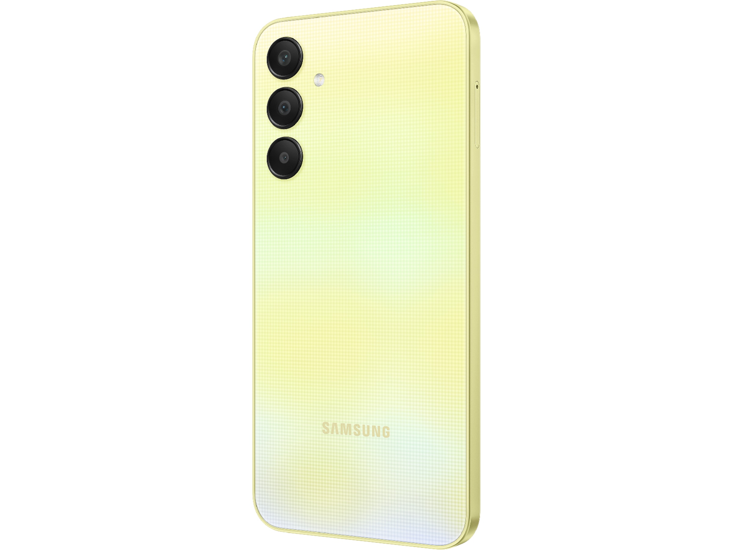 Galaxy A25 5G har funktioner, du ønsker og har brug for, med et stilfuldt, håndvenligt design. Den fås i de smukke farver Gul, Blå og Sort. Det har også en attraktiv pris.