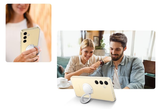 Beskyt din Samsung telefon med Clear Gadget Cases alsidige greb, der også fungerer som holder ved længere telefonsessioner og filmvisninger på farten.