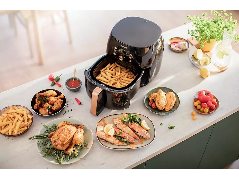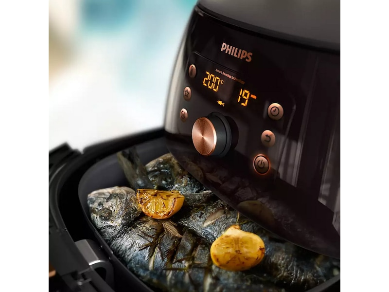 Den nye Philips Airfryer XXL tænker og laver mad til dig. Med Smart Sensing-teknologi justerer Airfryer automatisk tid og temperatur under stegning for perfekt stegte retter. Vælg og nyd hver bid!