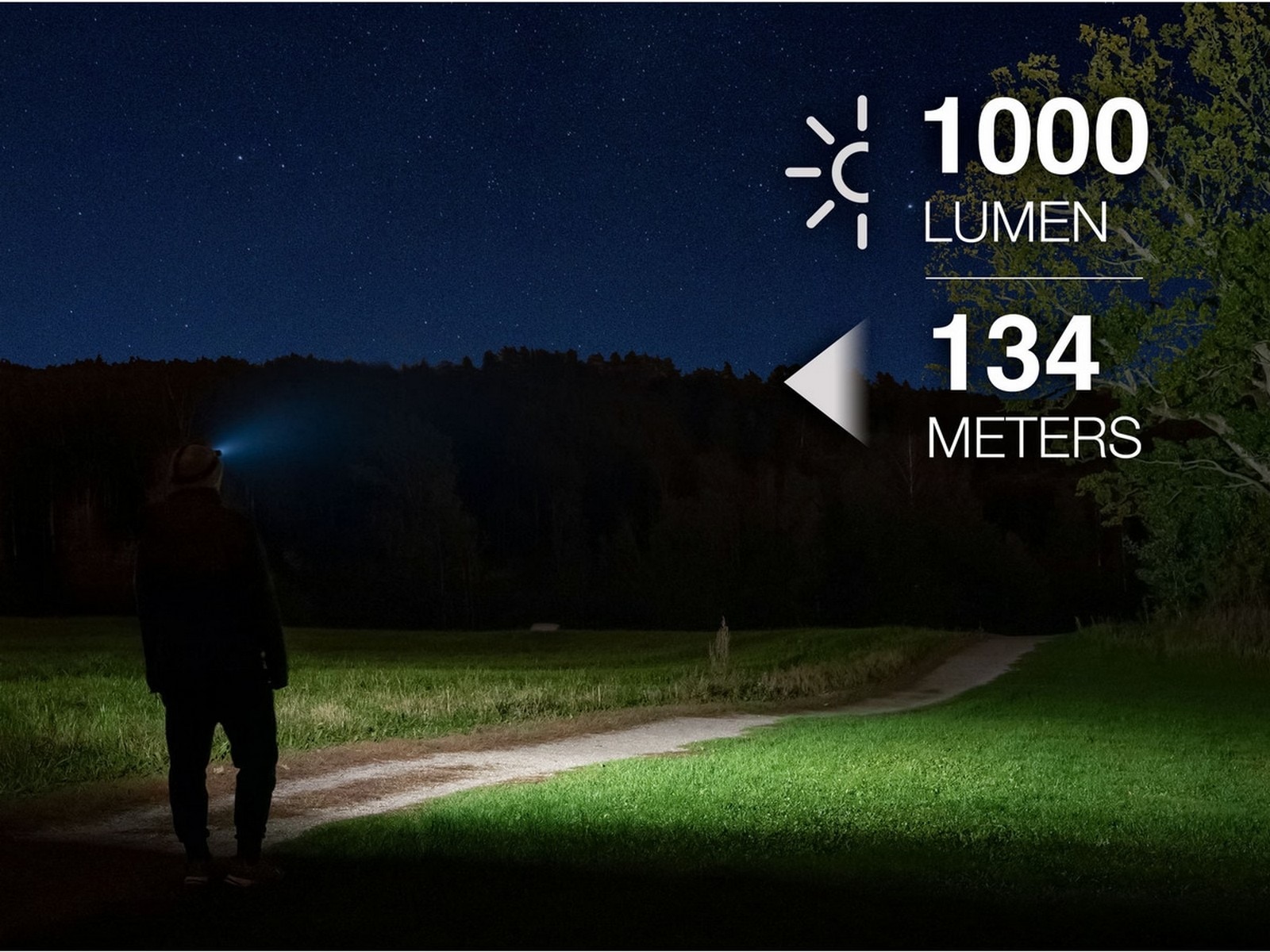 Forlygten vejer kun 43,8 gram, inklusive batteri. Et solidt og elastisk pandebånd sikrer, at pandelampen forbliver på plads under aktivitet, uanset om du løber, står på ski, vandrer eller camping.