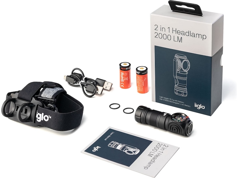 iiglo forlygte 2000 Lumen let vægt og genopladeligt, 18350 batteri - 1180373