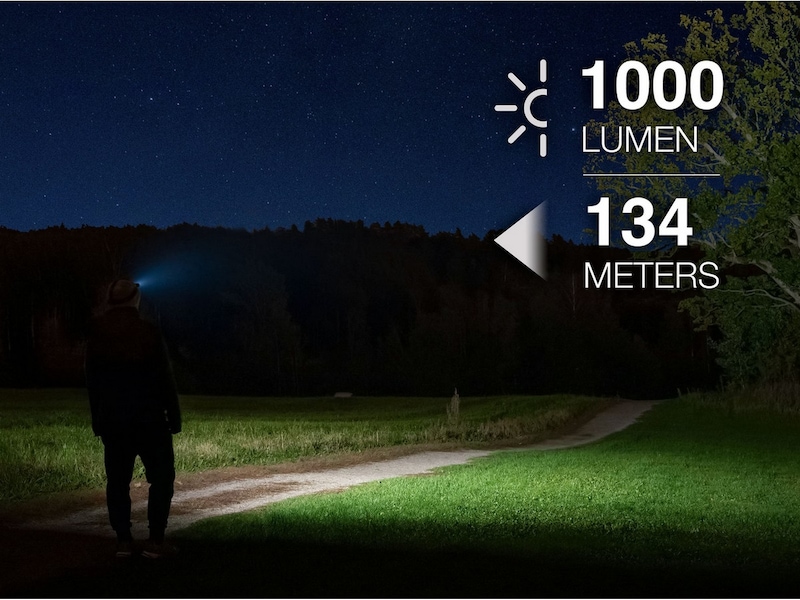 Den har 3 forskellige lysindstillinger, herunder en boost-tilstand og en blinkende tilstand for øget sikkerhed i mørket. I boost-tilstanden kan lysstrålen nå en utrolig rækkevidde på 180 meter.