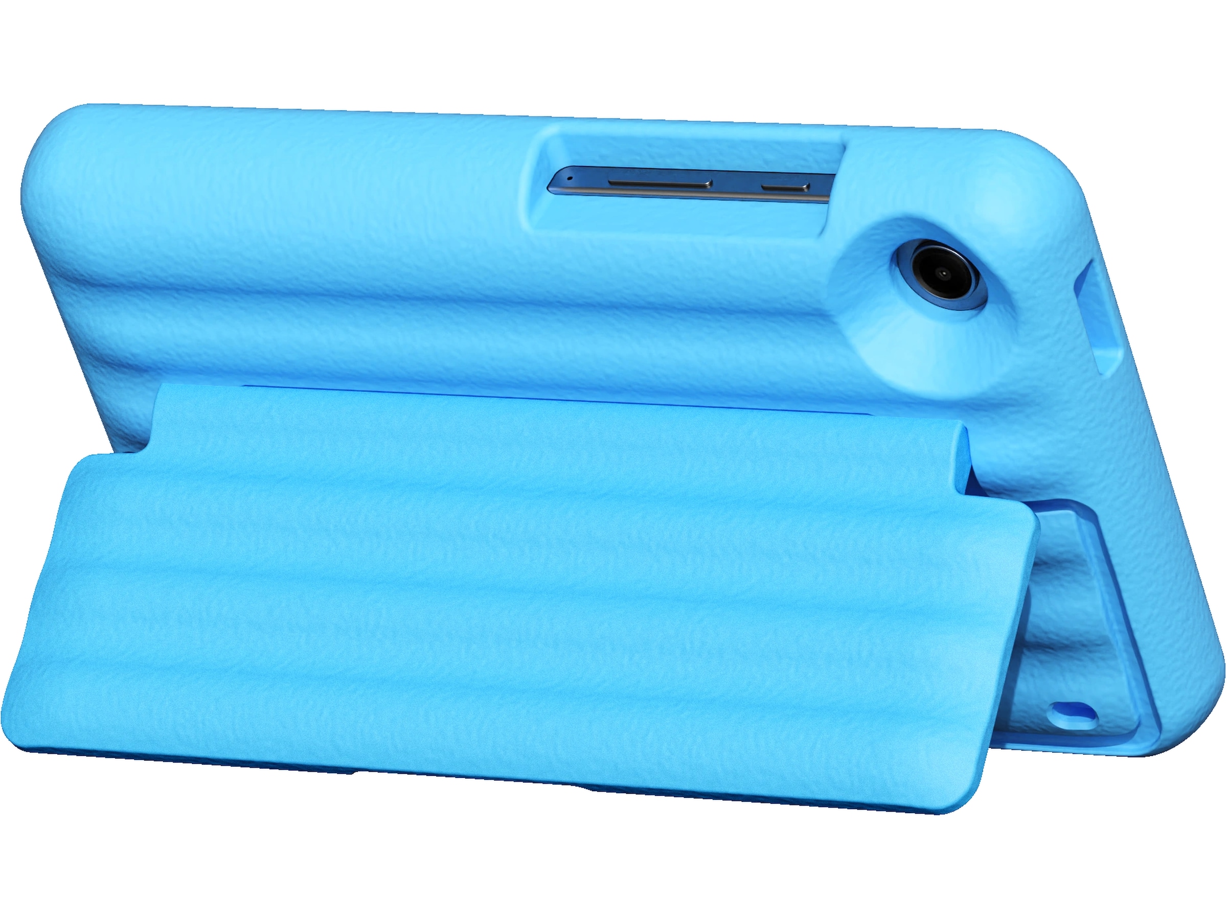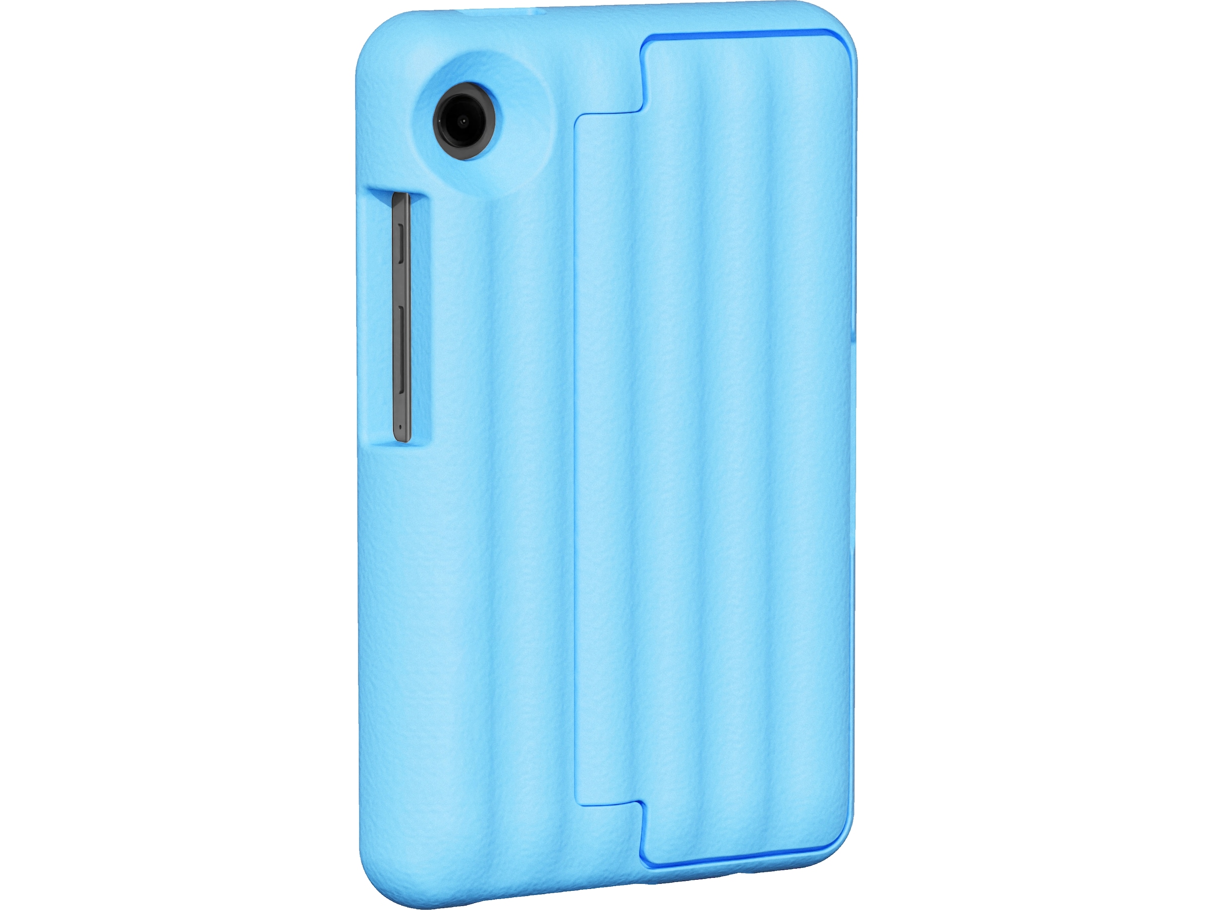 EVA-skummet absorberer stød og beskytter Galaxy Tab ved fald og ydre påvirkninger. Materialet er ufarligt for børn og har et konvertibelt stativ.