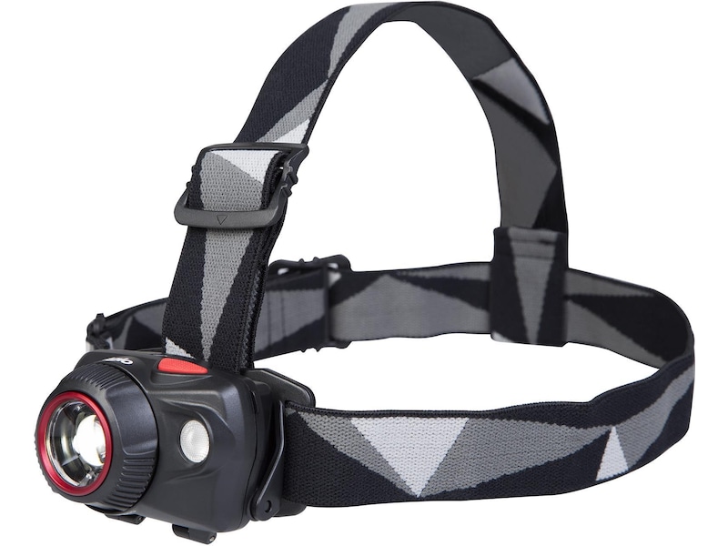 Denne kraftfulde pandelampe har to lyskilder, der tilsammen giver fem forskellige lystilstande, der dækker alles behov. Tre forskellige lys-tilstande i hvidt lys fra frontlyspæren og to ekstra tilstande fra 0,5 W Nichia Rød LED-pære. Frontlyspæren har en linse, der giver et ensartet og klart lys, og ved at dreje ringen omkring linsen justerer du let lyskeglens fokus fra smalt til bredt. Ved maksimal styrke har lygten en rækkevidde på 150 meter. Med gratis projektionsvinklen justerer du enkelt lampens retning og vinkel.