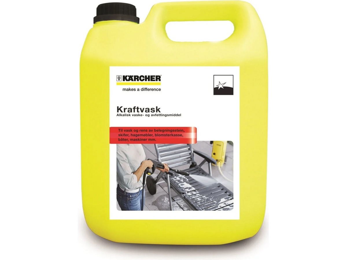 Kärcher power wash er et effektivt og hurtigtvirkende rengøringsmiddel, som samtidig er skånsomt mod overfladen. Connect'n' Clean er et praktisk system til nemt at skifte mellem forskellige typer rengøringsmidler. Kraftvasken er fremragende til vask og rengøring af havemøbler, både, skifer, belægningssten, blomsterkasser, maskiner og lignende. Powerwash har rigtig god opløsningsevne på sod, luftforurening, grønt græs, olie og andet vanskeligt snavs (ikke asfalt). 4 liter.