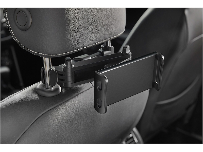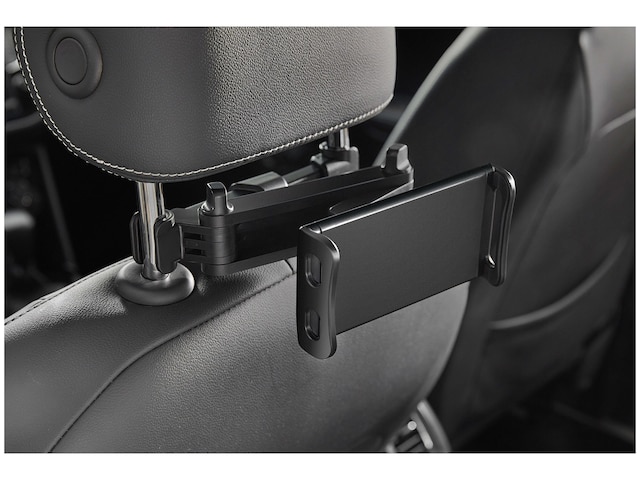Solid og smart holderdesign til telefoner og tablets. Holderen fastgøres nemt til nakkestøtten på et af forsæderne i bilen. Den sidder stabilt ved at fastgøres til begge nakkestøttestænger.