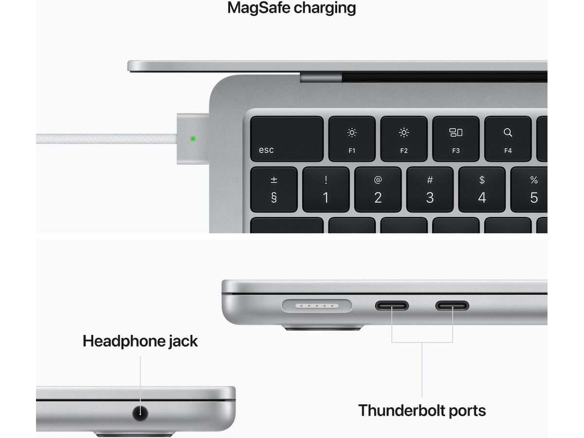 - MagSafe-opladningsport, to Thunderbolt-porte og hovedtelefonstik