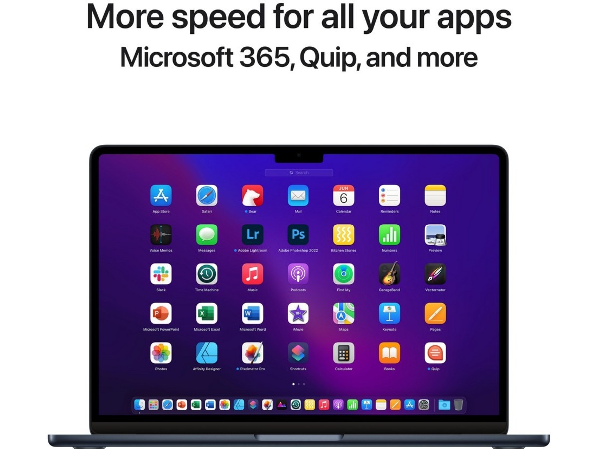 - 13,6-tommer Liquid Retina-skærm med 500 nit lysstyrke og stort farverum (P3) giver stærke farver og et utroligt detaljeringsniveau3