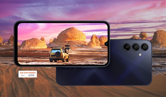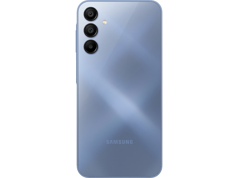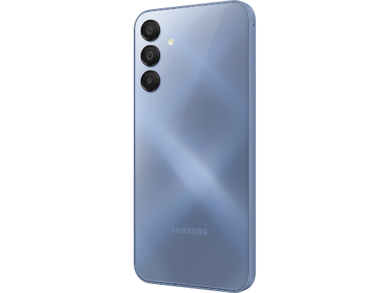 *Billed simuleret til illustrative formål.**Målt diagonalt er skærmstørrelsen 6,5" i det fulde rektangel og 6,3" for de afrundede hjørner. Det faktiske synlige område er mindre på grund af de afrundede hjørner og kameraets udskæring.***800 nits ved HBM (High Brightness Mode).****Galaxy A15 (SM-A155)'s skærm modtog øjenplejecertificering af SGS baseret på dets evne til at reducere de skadelige virkninger af blåt lys.