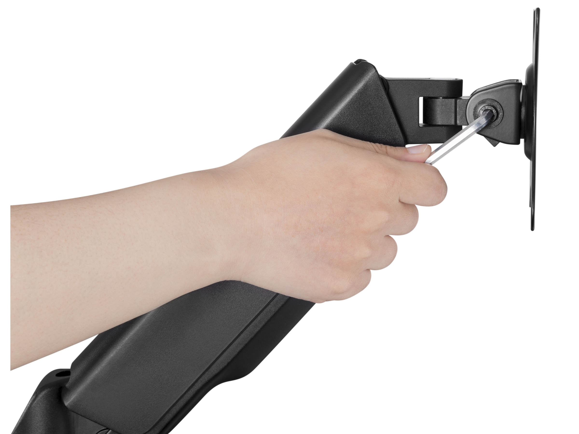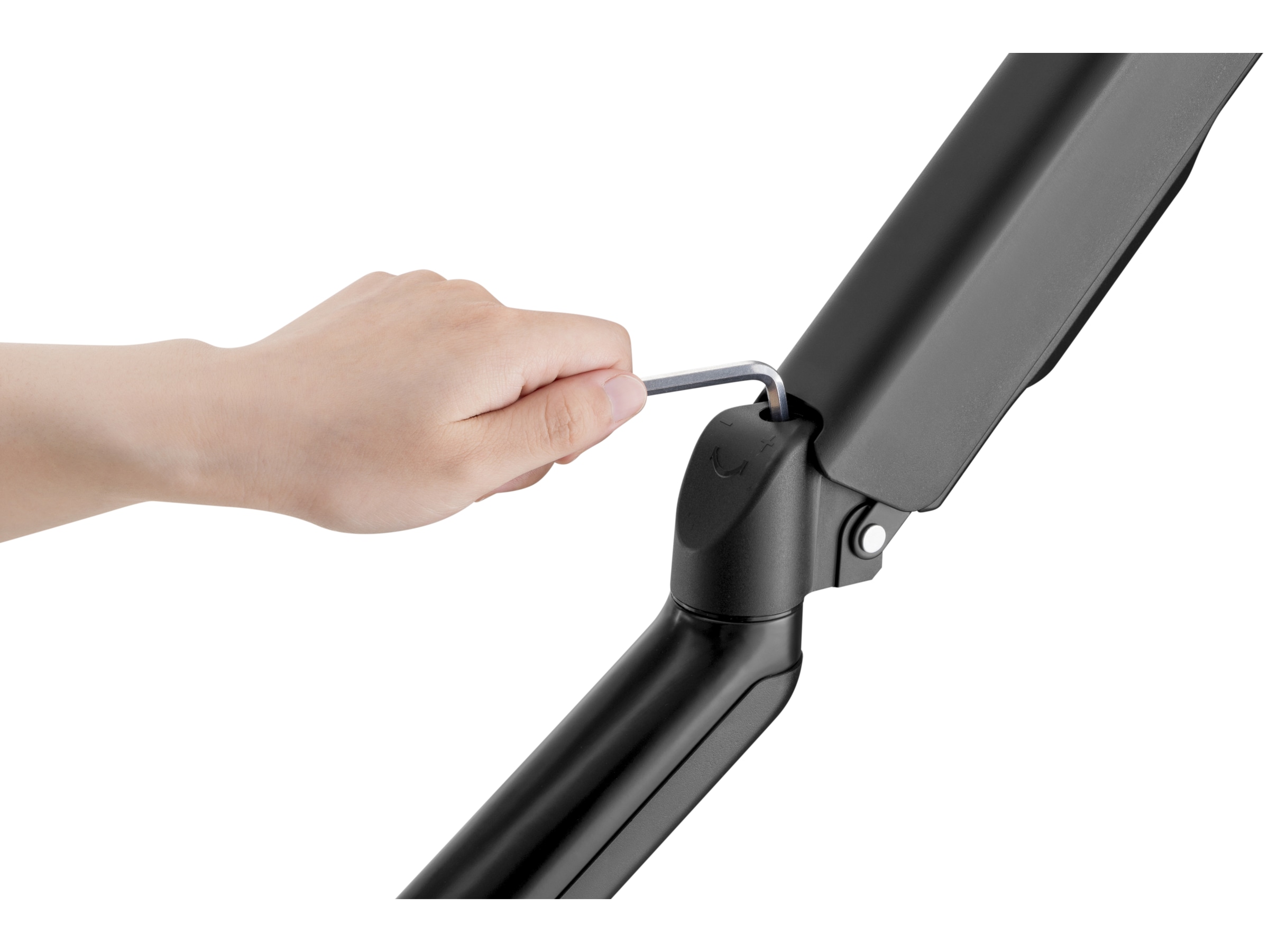 Monitorarmen er forudindstillet med den laveste vægtkapacitet under produktionen, så for at monitoren skal sidde fast, skal du justere fjederspændingen med den medfølgende unbrakonøgle med monitoren monteret.