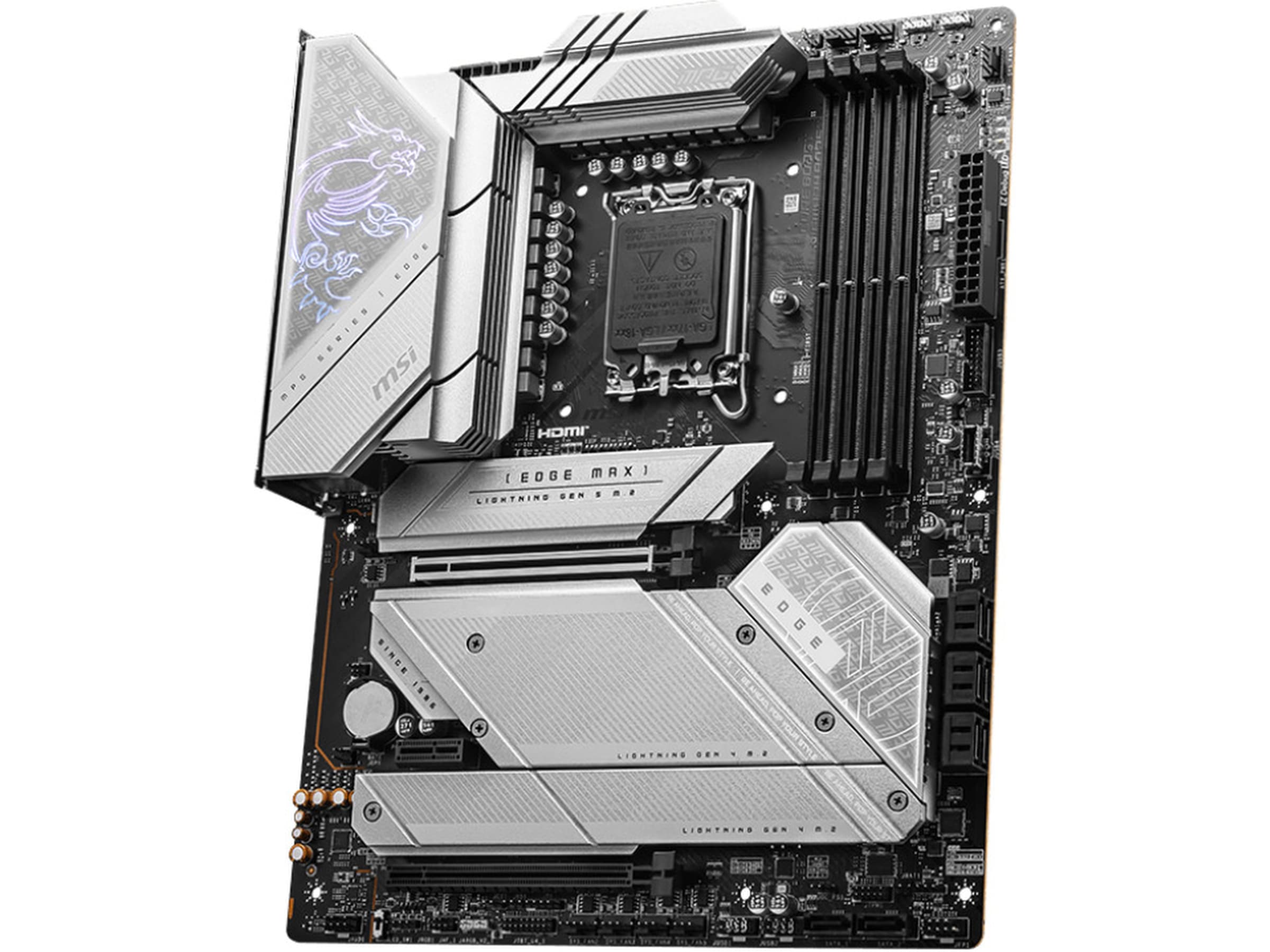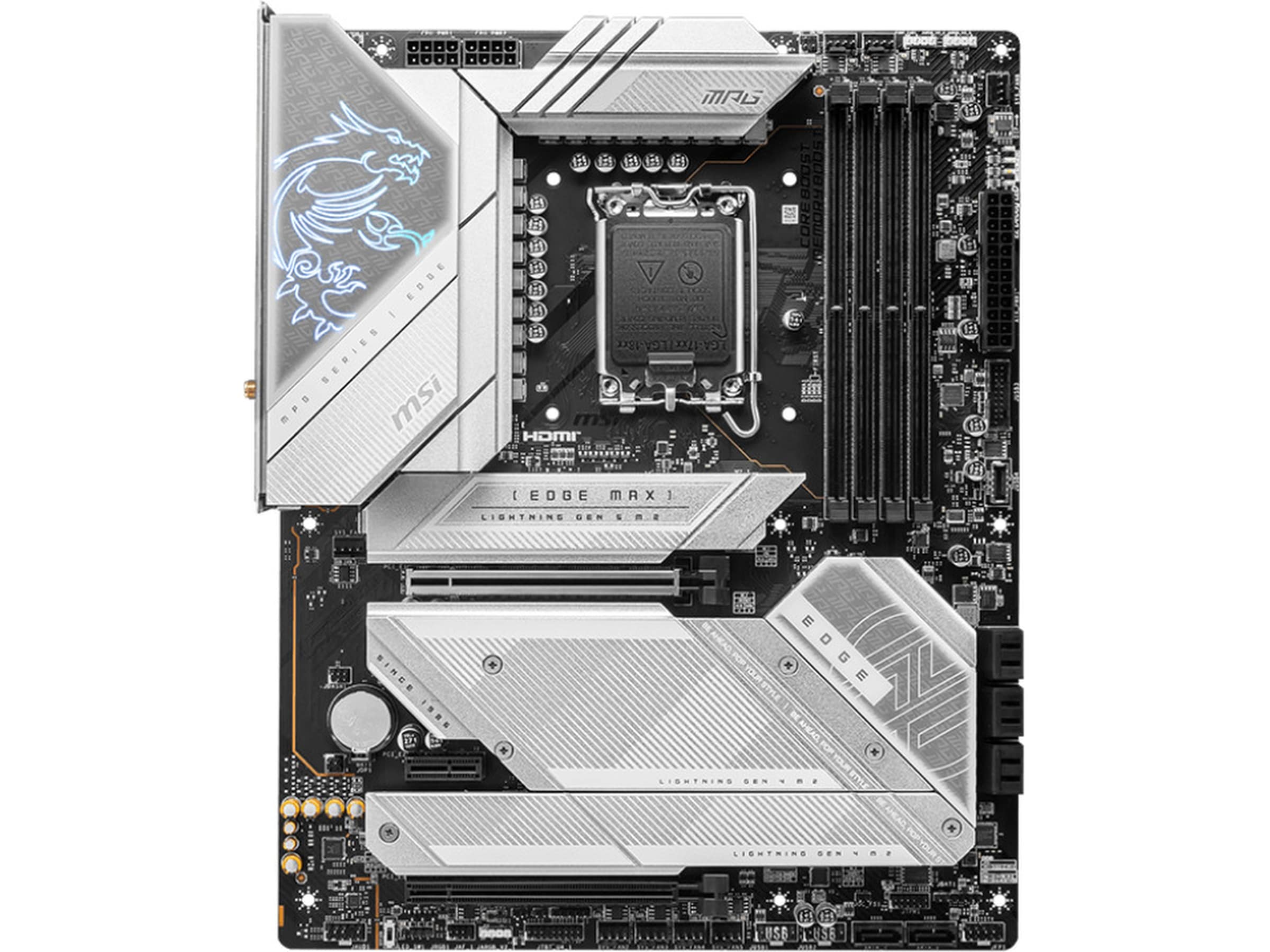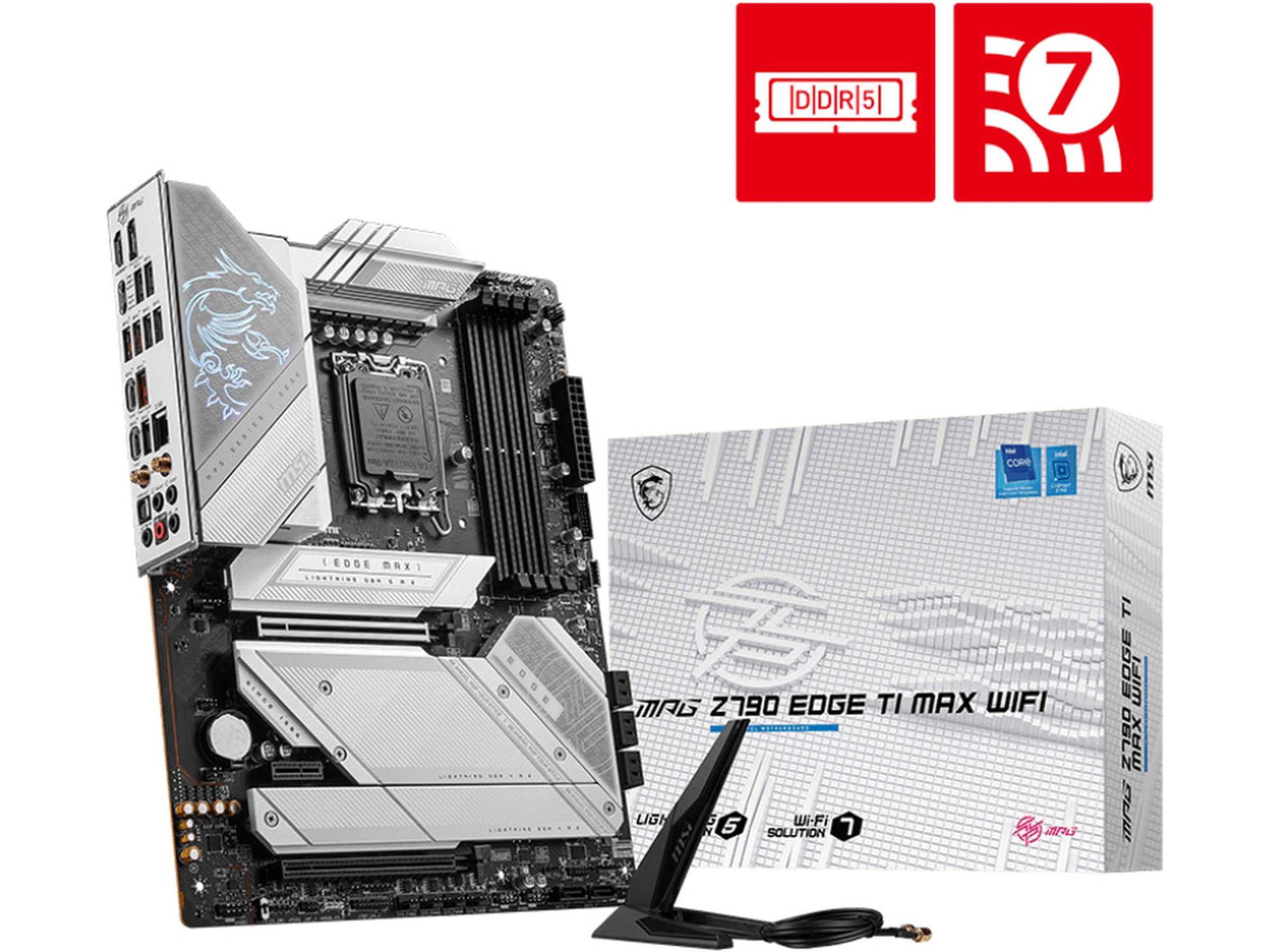 MPG Z790 EDGE TI MAX WIFI er dækket i et sølv-hvidt farveskema for hvide PC-bygge-entusiaster, der ønsker at vise forskellige personligheder. Den er også kraftfuld, fordi den har Wi-Fi 7 løsning, en optimeret DDR5-kreds, og den nyeste PCIe 5.0 M.2 med skrueløst M.2 Shield Frozr, og dette er det bedste hvide Z790 ATX bundkort til Intel 14. Gen og 13. Gen Core-processorer.