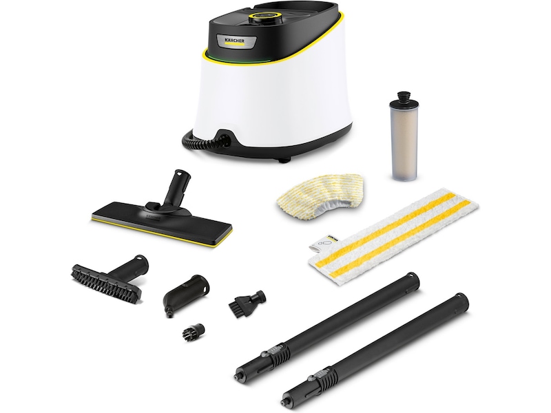 Den leveres også med EasyFix gulvmundstykke med fleksibel samling for fremragende ergonomi og lamelteknologi for perfekte rengøringsresultater. Med det praktiske velcro-system kan gulvrengøringskluden nemt fastgøres til gulvmundstykket og fjernes igen, uden at du skal komme i kontakt med snavset. Ved hjælp af to-trins dampregulering kan dampintensiteten tilpasses perfekt til overfladen og snavset. Yderligere detaljer: opbevaring til tilbehør og parkeringsposition til gulvmundstykket.