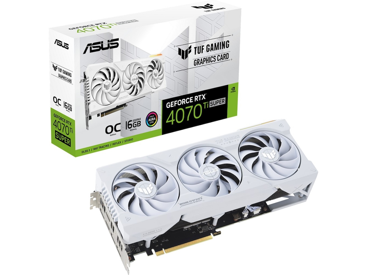ASUS TUF Gaming GeForce RTX™ 4070 Ti SUPER 16GB GDDR6X White OC Edition with DLSS 3, lower temps, and enhanced durability