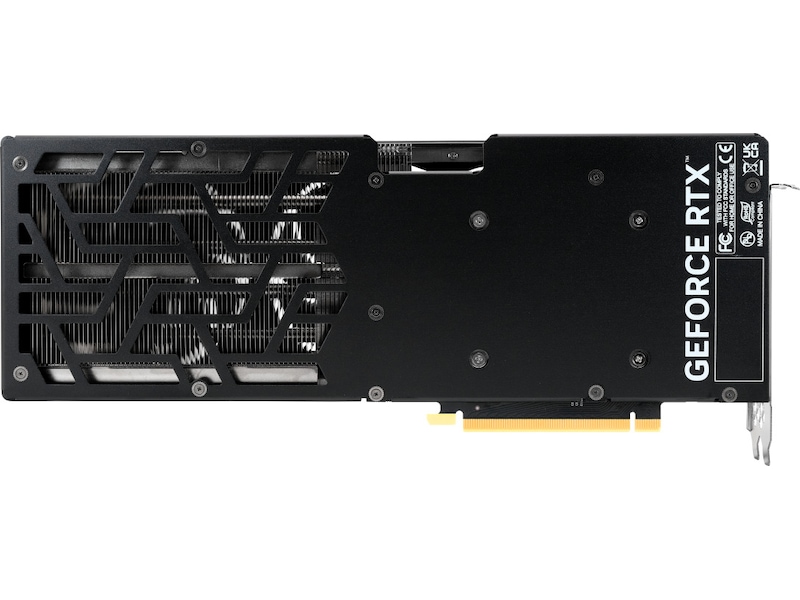 Gainward GeForce RTX™ 4080 SUPER Panther OC, der undgår alle klokker og fløjter, præsenterer sig selv i en slank sort finish med enkle stregmønstre, der tilføjer et strejf af dynamik i mørket.