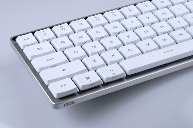 ROG UV-coated ABS keycaps bruger et lag af UV-hård belægning for at give stærkt forbedret glansmodstand.