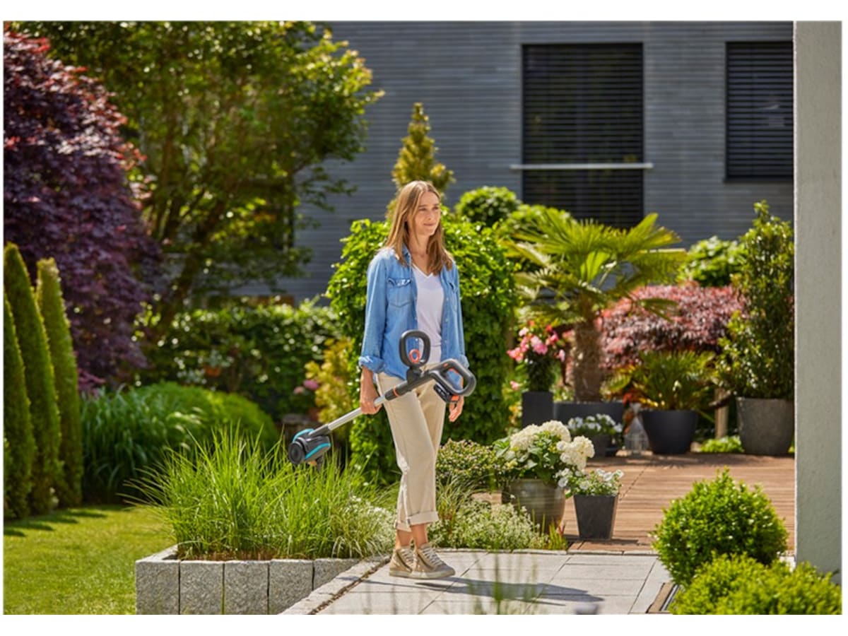 Med en vægt på kun 2 kg (ekskl. batteri) er ukrudtsbekæmpelse en lille sag. Teleskoprøret kan justeres i højden, så det er velegnet til brugere i alle højder. Det ergonomisk udformede håndtag, som er suppleret med et ekstra fronthåndtag, garanterer enestående komfort under hele arbejdet. Dette muliggør ergonomisk, belastningsfrit arbejde i oprejst stilling, hvilket øger komforten betragteligt.
