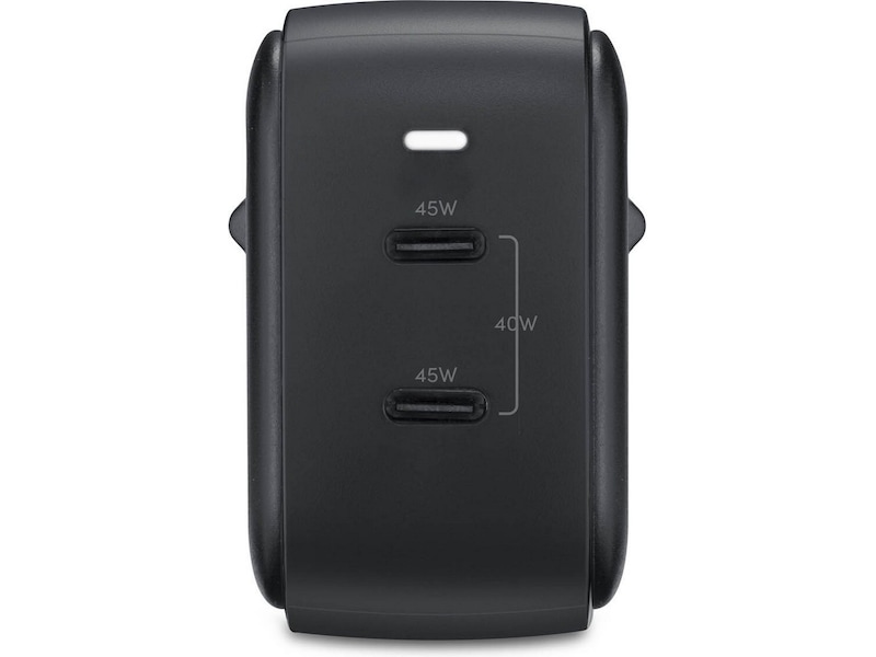 Anderssons 45 W GaN-oplader med to USB-C-porte er en effektiv og kraftfuld vægoplader med den nyeste GaN-teknologi, der giver dig højtydende opladning. Opladeren understøtter Dynamic Power Delivery med PPS-teknologi, der giver op til 45 W hurtig opladning. Vægopladeren er CE-mærket og har en maksimal effekt på 45 W.