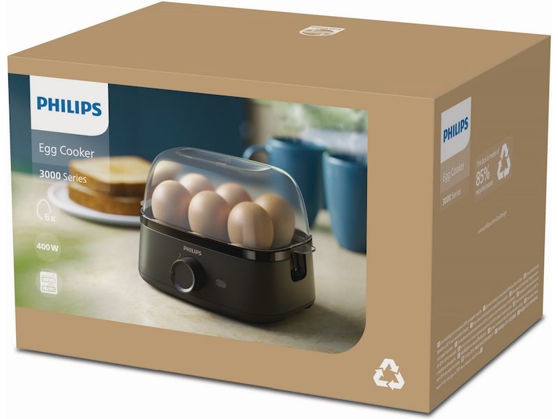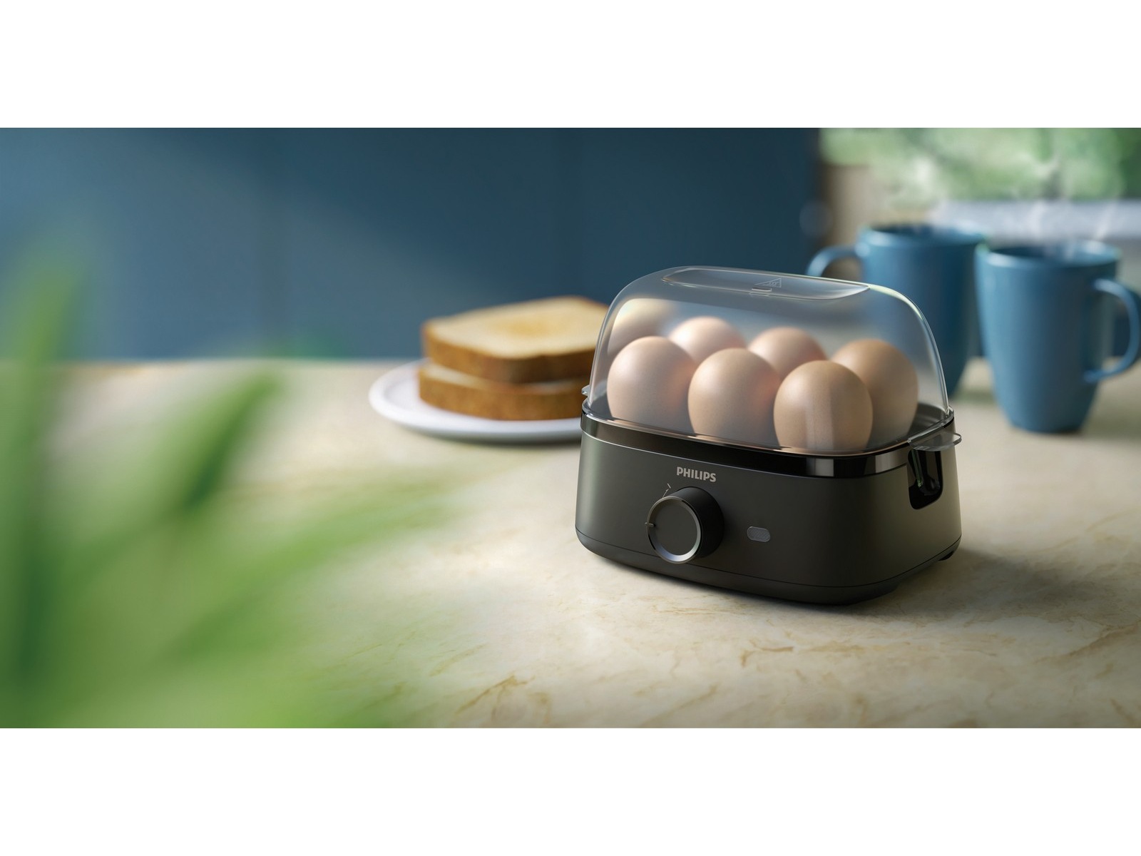 Server hele familien ved at koge op til seks kogte æg eller tre pocherede æg ad gangen.