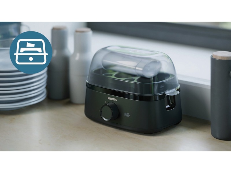 Æg kogt som du vil have dem. Perfekte blødkogte, smilende, hårdkogte og pocherede æg. Den har kapacitet nok til hele familien, og det kompakte, praktiske design er desuden nemt at rengøre og fylder ikke meget.