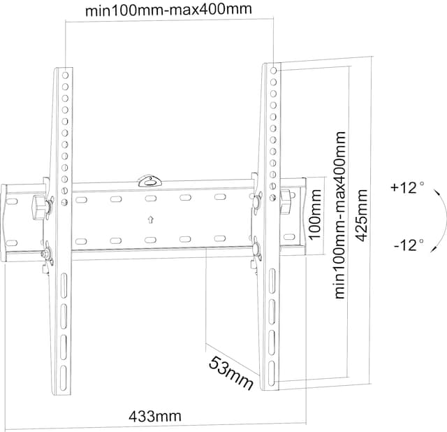 Andersson WMT 2.0 har en tiltfunktion, der giver dig mulighed for let at finde den rette vinkel på dit TV. Tiltfunktionen varierer mellem 12° og -15°. For at drage fordel af tiltfunktionen skal vægbeslaget installeres med en afstand på 53 mm mellem beslaget og væggen.