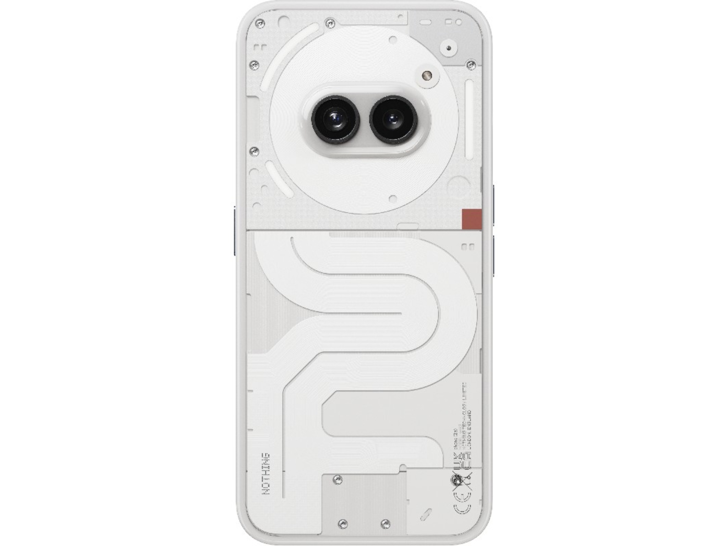 For at få en endnu mere forførende effekt har vi skabt en fornemmelse af symetrisk ubalance, hvor den nederste del af din Phone (2a) er designet, så den afbryder flowet fra toppen.