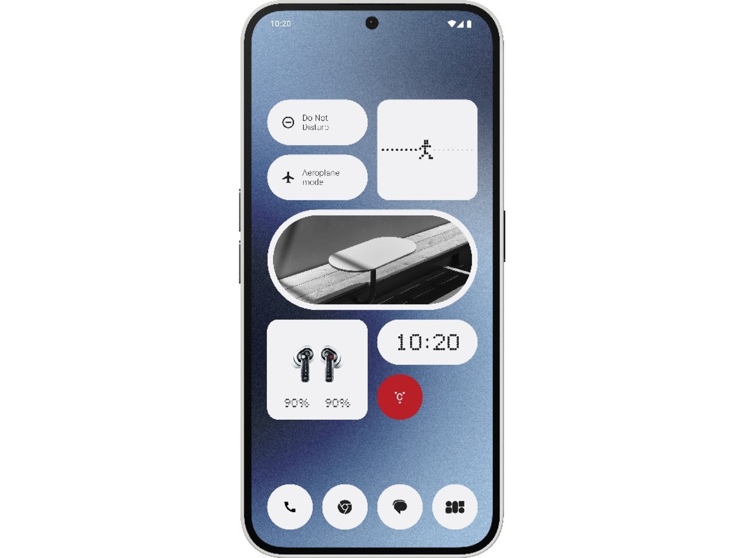 Nothing OS, drevet af Android 14, leverer en hurtig og smidig oplevelse forankret i brugervenlighed og funktionel tilpasning. Det inkarnerer den umiskendelige Nothing-stil med skræddersyede widgets, apps, skrifttyper, baggrunde og mere. Forenkl din smartphonebrug med tilpasningsmuligheder, der giver mening for dig, herunder monokromatiske temaer og Nothing-designede widgets.