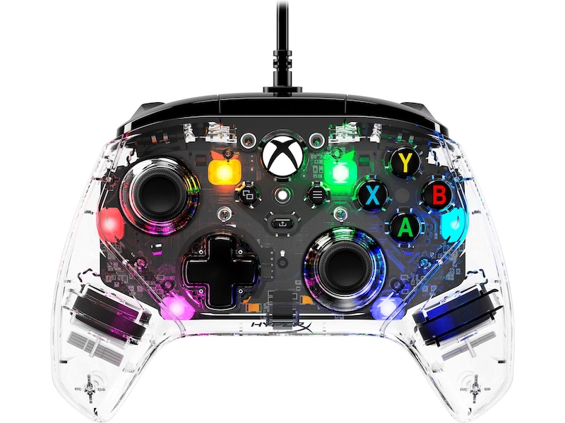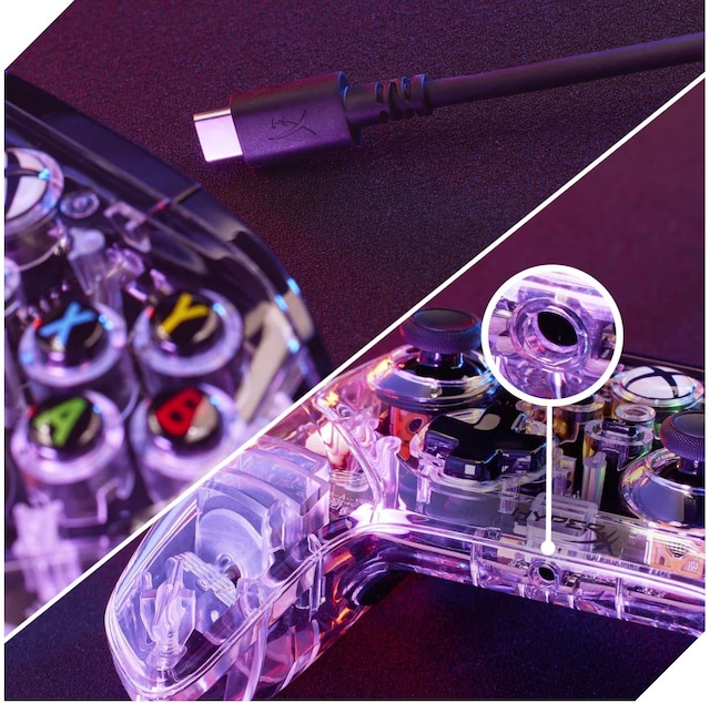 HyperX Clutch Gladiate RGB Gaming Controller er bygget til Xbox-spillere, der ønsker en præcisionscontroller med brugerdefinerbare kontroller. Denne officielt licenserede kablede Xbox[1]-controller har dobbelte triggerlåse og genanvendbare knapper på bagsiden, så du kan tage kontrollen på din måde. Kraftige dobbelte rumblemotorer og impulsudløsere tager fordybelse og force feedback til næste niveau. Vis din stil frem med 3 forskellige effekter og 7 forskellige farver til tilpasning af belysning. Den har også et 3,5 mm stereostik til at forbinde dit foretrukne headset med ledning.