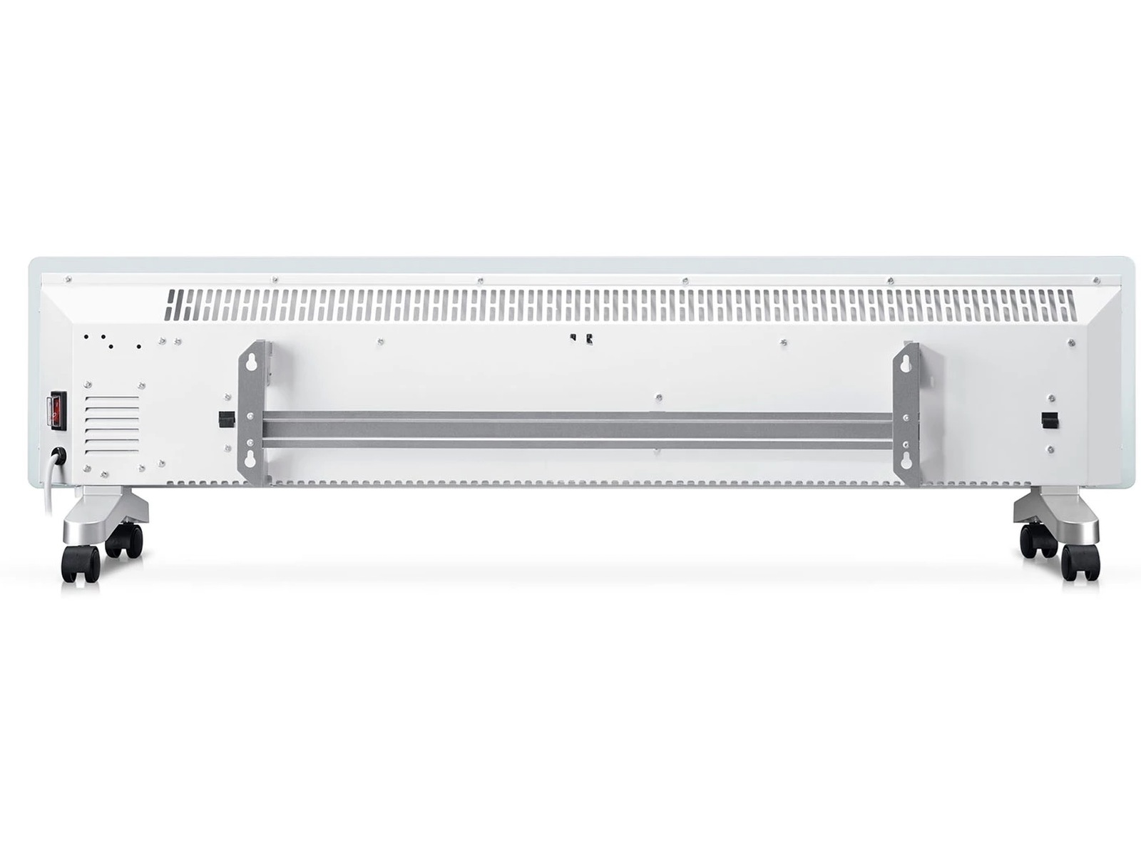 Varmeren leveres med både et vægmonteringssæt og et gulvstativ med aftagelige hjul, så du kan vælge, hvor du vil placere den. Med et 1,5 meter langt strømkabel har du stor fleksibilitet, når det kommer til placering. Trods den kraftige varmeeffekt vejer den kun 7 kg.