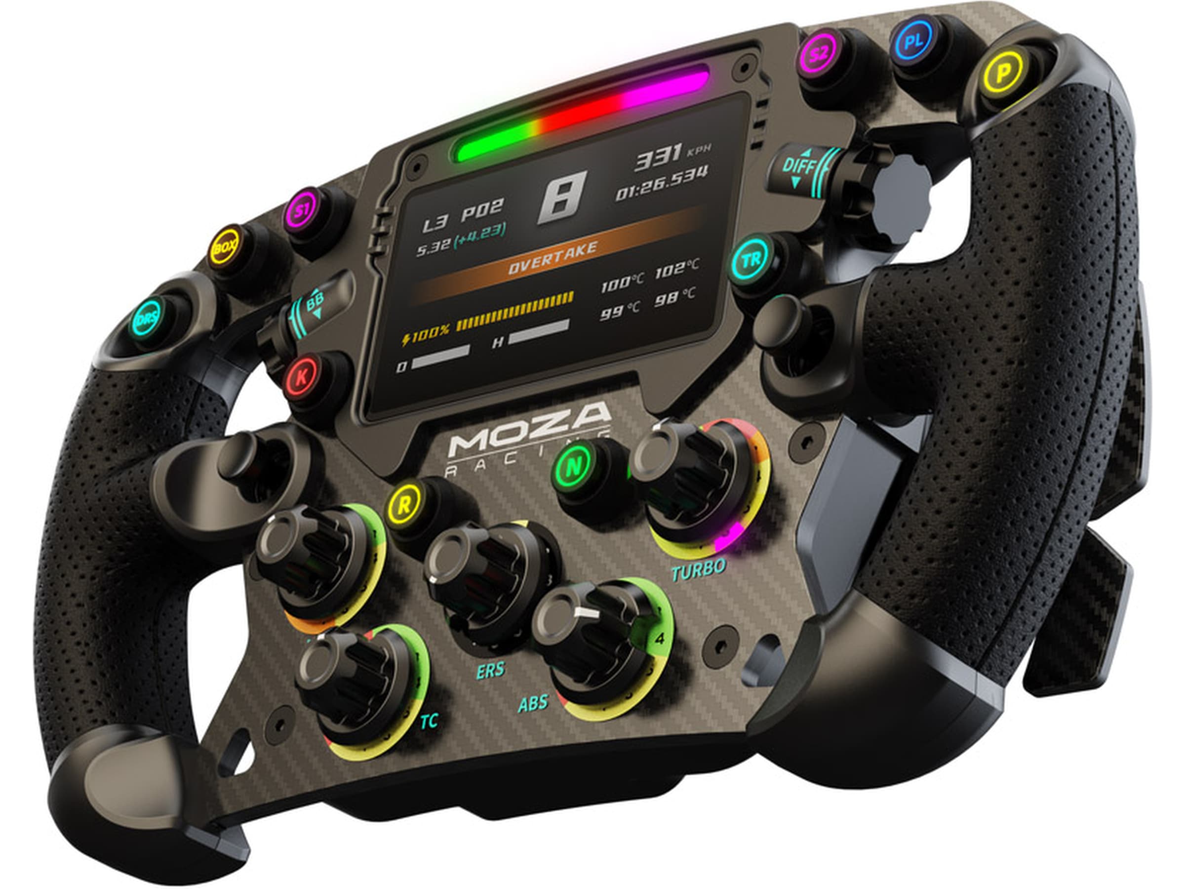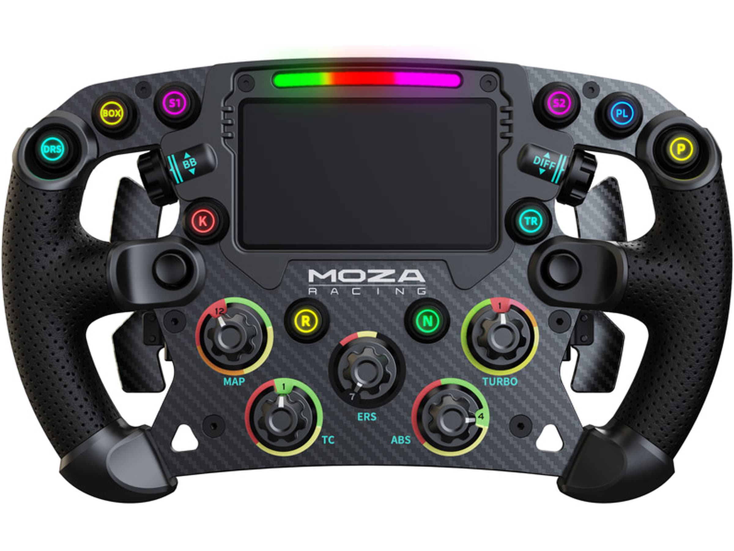 Toray kulfiberkonstruktionen sikrer let holdbarhed og en slående æstetik. Oplev lynhurtige gearskift med de magnetiske dobbeltkoblingspadler. Bevar fuld kontrol over dit løb med det 4,3-tommer indbyggede digitale instrumentbræt, der giver real-time racerdata lige ved hånden. Nyd sømløse overgange med den tilpassede Quick-Release fra Real Racing, og tilpas din oplevelse yderligere med tilpasselige RGB RPM og shift-indikatorer, der tilføjer et levende touch til din opsætning.