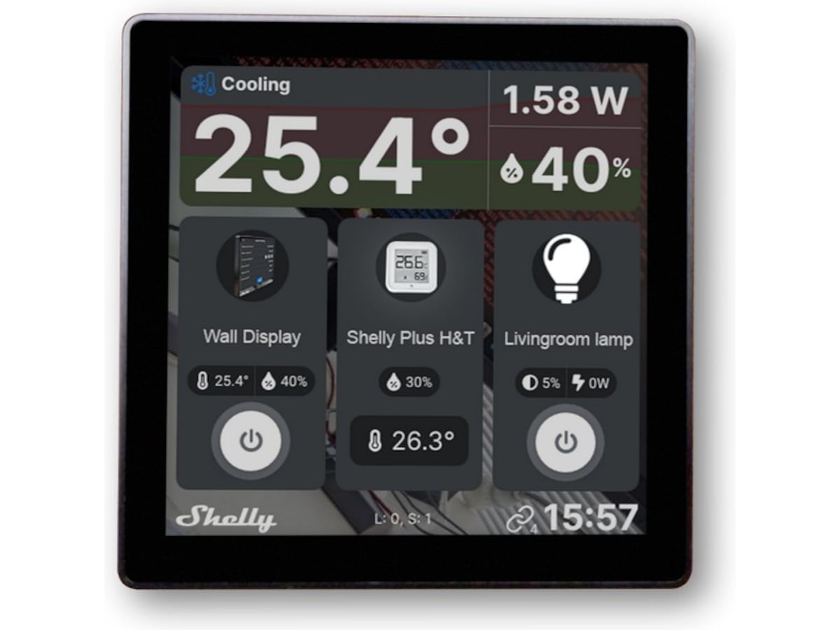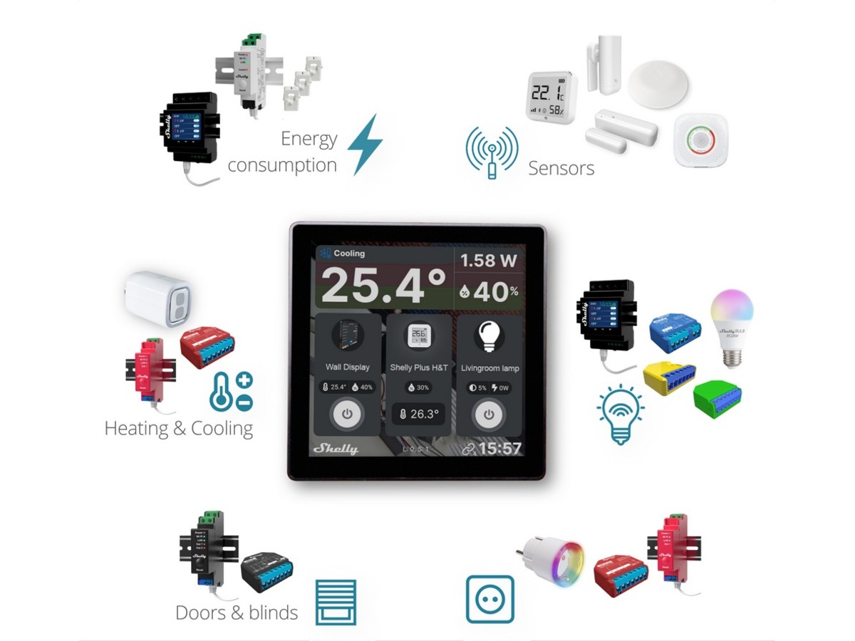 Shelly Wall Display er et intuitivt 4” vægdisplay, der giver dig nem, centraliseret kontrol og overvågning af alle dine Shelly-enheder. Med et minimalistisk udseende og tilpasselig startskærm vil Shelly Wall Display perfekt passe ind i dit interiør og tilpasse sig dine behov. Udskift din almindelige lyskontakt på 10 minutter og styr alle dine Shelly-enheder med blot et tryk.