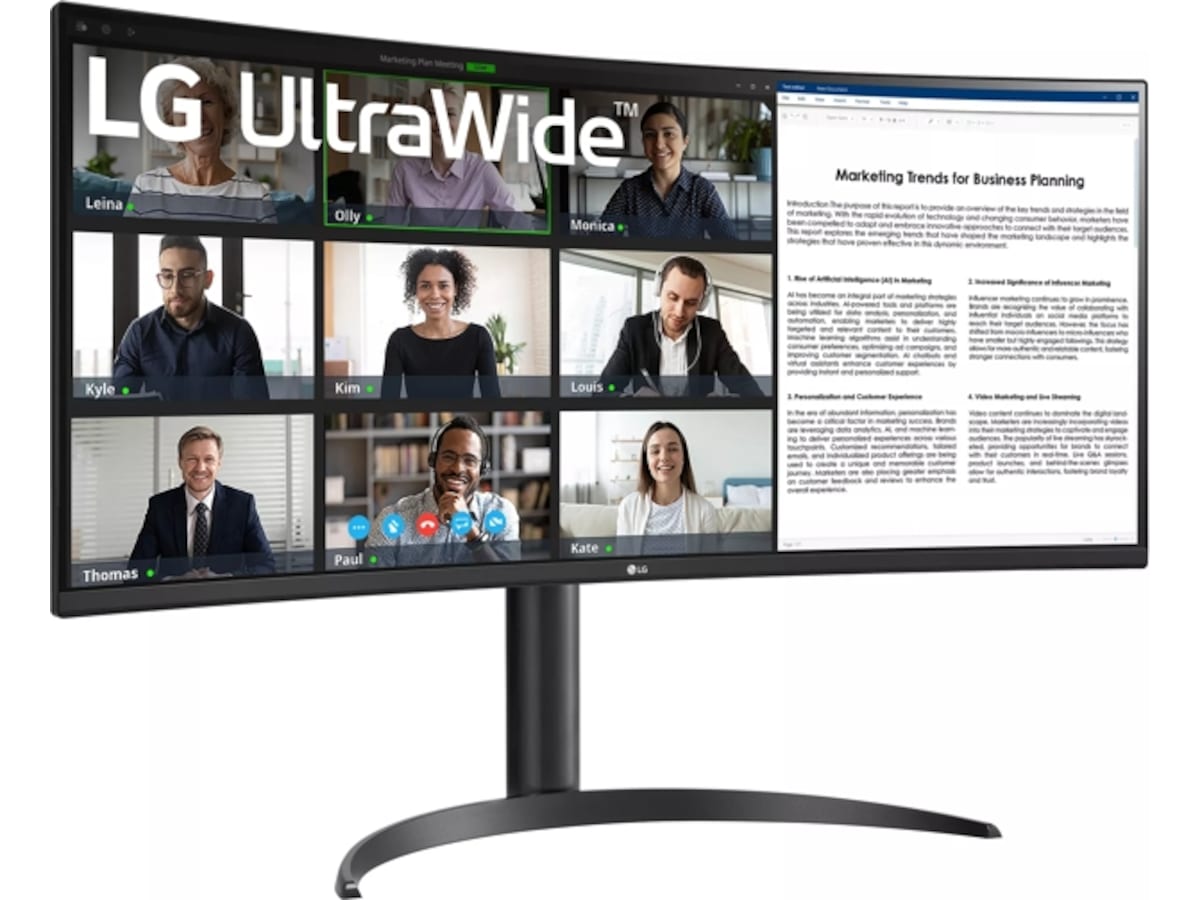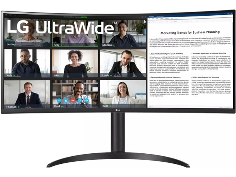- Den 21:9 UltraWide™ WQHD (3440 x 1440) buede skærm er fantastisk til arbejde. Bredskærmen giver dig mulighed for at se alt, hvad du arbejder på, med flere åbne vinduer, alt sammen på én skærm.