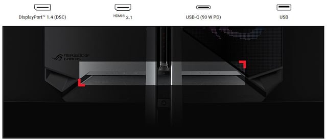 Omfattende tilslutningsmuligheder som DisplayPort™ 1.4 med Display Stream Compression (DSC), HDMI® 2.1, USB-C med 90 W Power Delivery og en USB-hub giver support til en lang række multimedieenheder.
