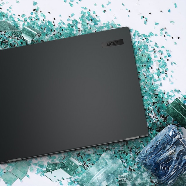 Designet delvist ved hjælp af PCR (Post-Consumer Recycled) plastik er denne bærbare computer til virksomheder EPEAT-registreret1 og bruger 100 % genanvendte emballagematerialer