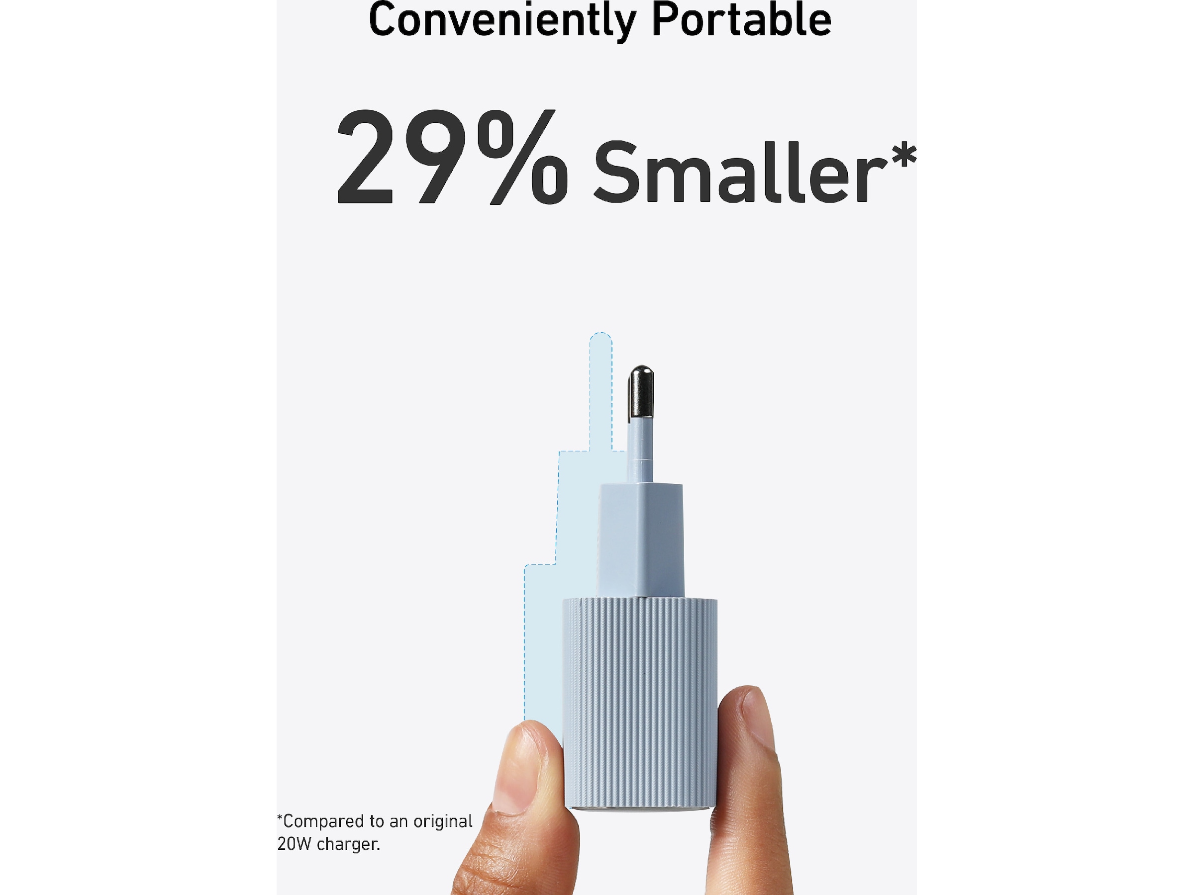 Powered by GaN gør den 29,3 % mindre end Apples originale 20W oplader.