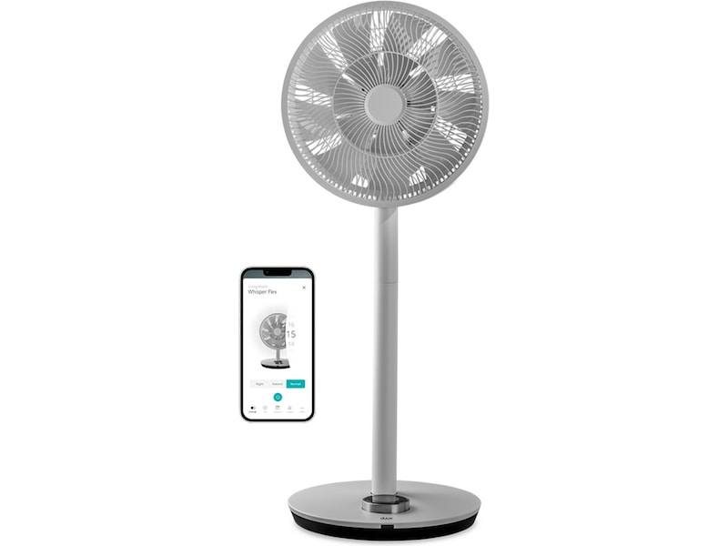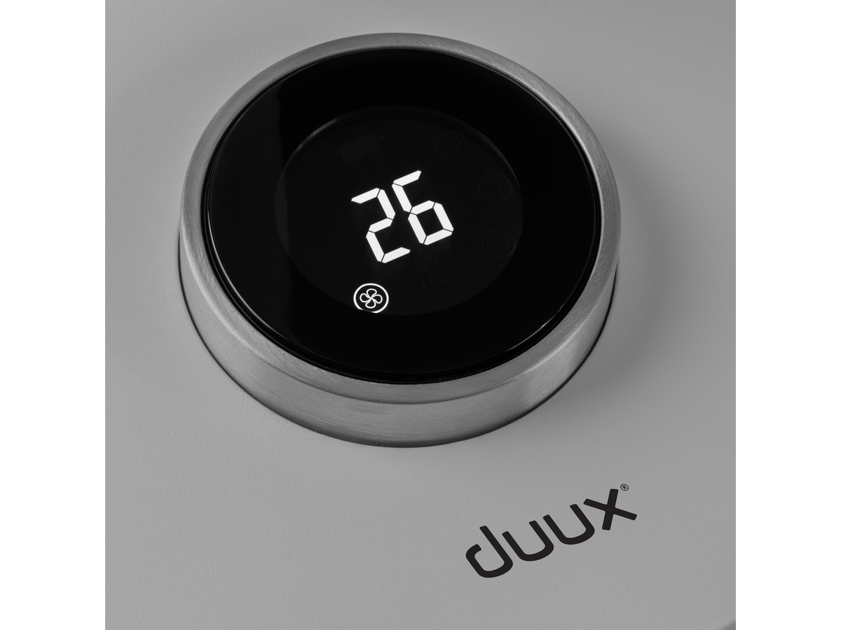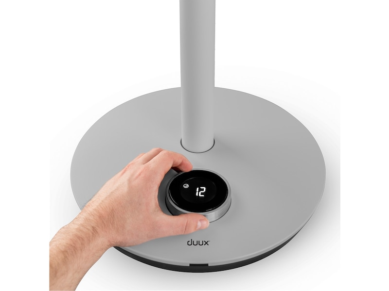 Whisper Flex tilbyder mange intuitive betjeningsmuligheder, inklusive drejeknappen i aluminium med højopløselig LCD-skærm i midten af interfacet. Åh, og lad være med at rejse dig. Du skal blot betjene Whisper Flex med Duux smartphone-appen eller fjernbetjeningen, der magnetisk fastgøres på bagsiden af enheden.