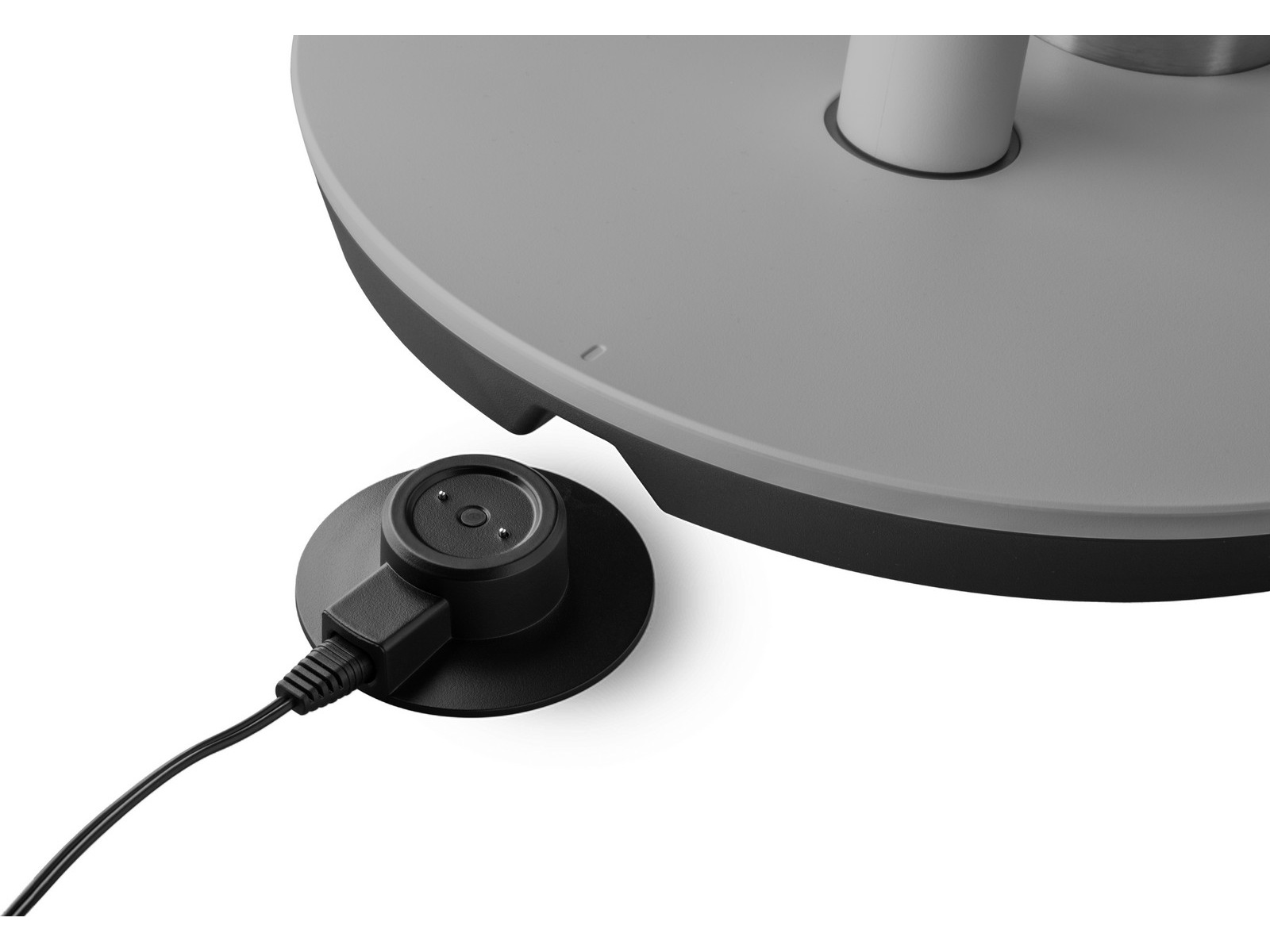 Det medfølgende forlængerrør forvandler Whisper Flex fra en skrivebordsmodel (51 cm) til en gulvmodel (88 cm). Den kompatible dock og batteripakke fås separat og giver dig mulighed for at forvandle Whisper Flex til en bærbar ventilator. Batteriet har en levetid på op til 18 timer, afhængig af indstillinger.