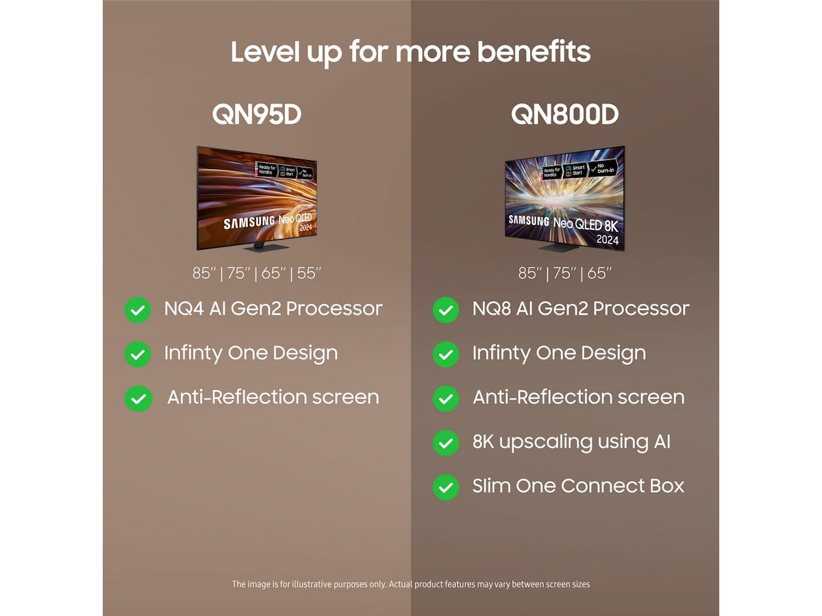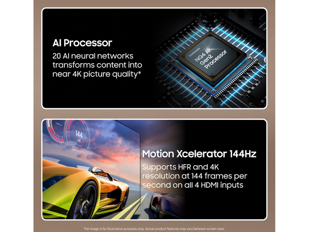 Den kraftige NQ4 AI Gen2-processor anvender AI-teknologi, der tilpasser indholdet til 4K og justerer billede og lyd efter rummet.