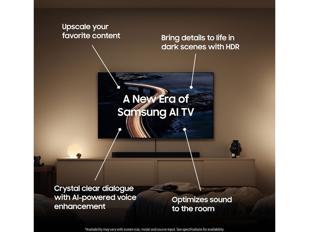 Den kraftige NQ4 AI Gen2-processor anvender AI-teknologi, der tilpasser indholdet til 4K og justerer billede og lyd efter rummet.