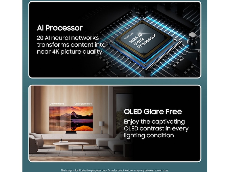Med denne nye skærmteknologi kan du nyde den imponerende kontrast, som OLED er kendt for, uden forstyrrende refleksioner fra lyskilder.