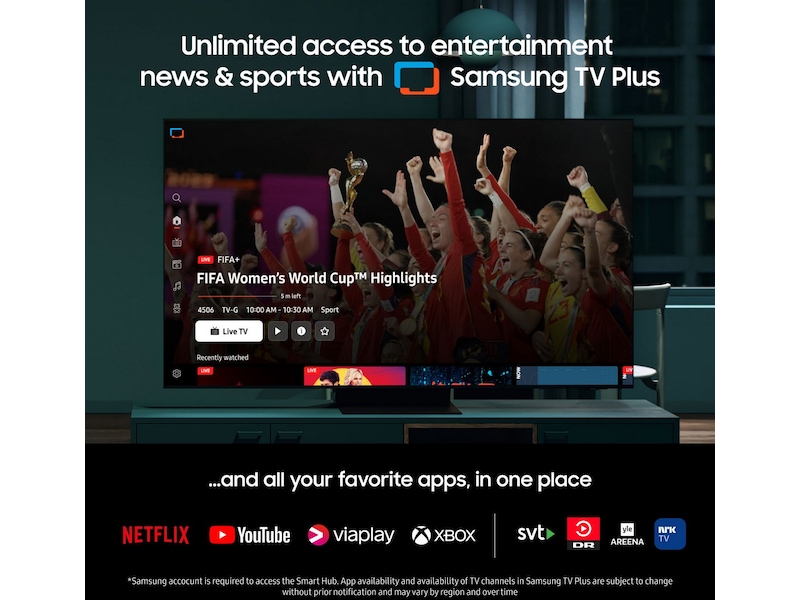• Gratis adgang til film, serier, sport og nyheder med Samsung TV Plus
