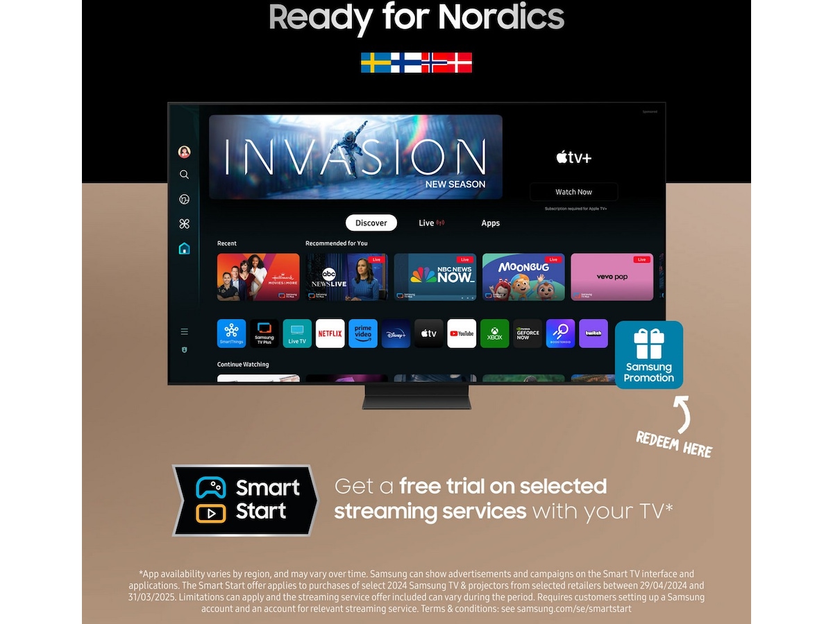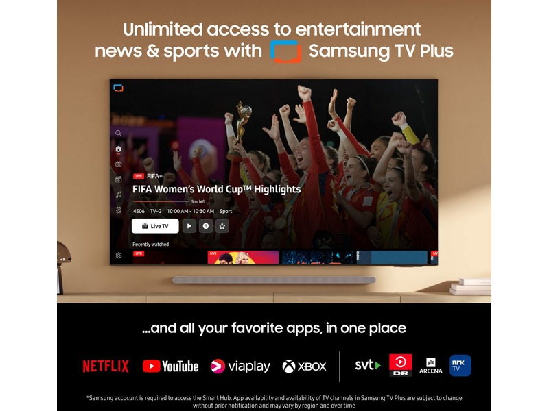 | Internet Streaming Services | Samsung TV PLUS, Smart Hub, HbbTV 2.0.3 |