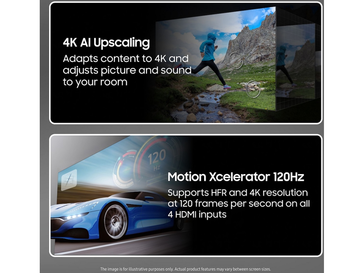 Den kraftige NQ4 AI Gen2-processor anvender AI-teknologi, der tilpasser indholdet til 4K og justerer billede og lyd efter rummet.