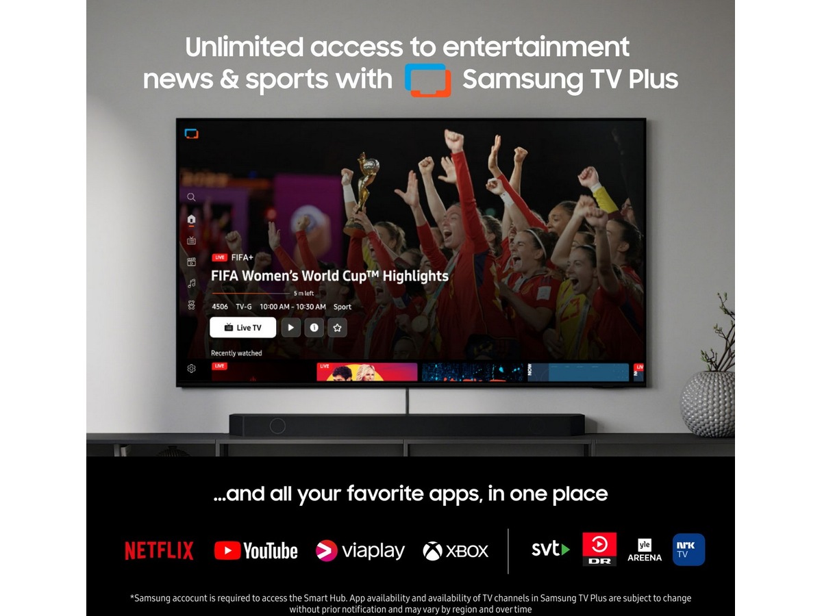 • Gratis adgang til film, serier, sport og nyheder med Samsung TV Plus