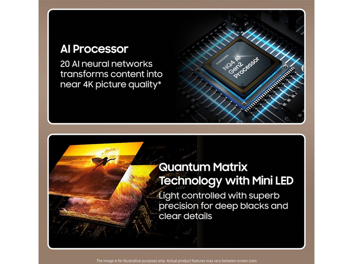 Den kraftige NQ4 AI Gen2-processor anvender AI-teknologi, der tilpasser indholdet til 4K og justerer billede og lyd efter rummet.