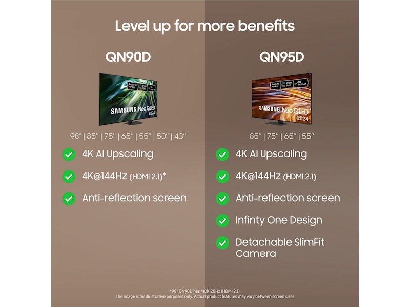 *Gælder ved køb af udvalgte Samsung TV-modeller fra 2024 hos udvalgte forhandlere. Garantien gælder i 10 år fra købsdato. Kræver kopi af købskvitteringen samt registrering på Samsungs websted senest 90 dage efter køb. Gælder ved køb foretaget til og med den 31. marts 2025 af udvalgte TV-modeller fra 2024. www.samsung.com/dk/offer/offline/screen-burn-warranty/