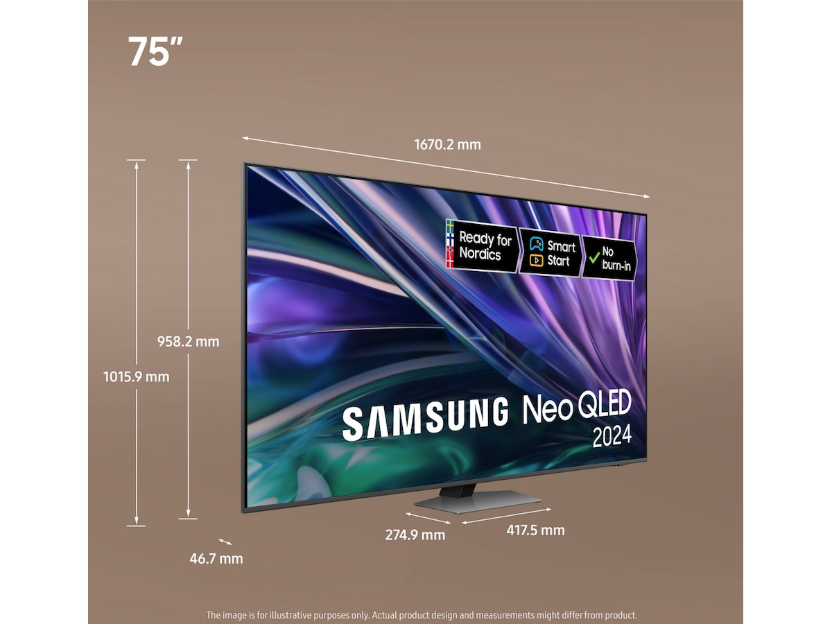 *Gælder ved køb af udvalgte Samsung TV-modeller fra 2024 hos udvalgte forhandlere. Garantien gælder i 10 år fra købsdato. Kræver kopi af købskvitteringen samt registrering på Samsungs websted senest 90 dage efter køb. Gælder ved køb foretaget til og med den 31. marts 2025 af udvalgte TV-modeller fra 2024. www.samsung.com/dk/offer/offline/screen-burn-warranty/
